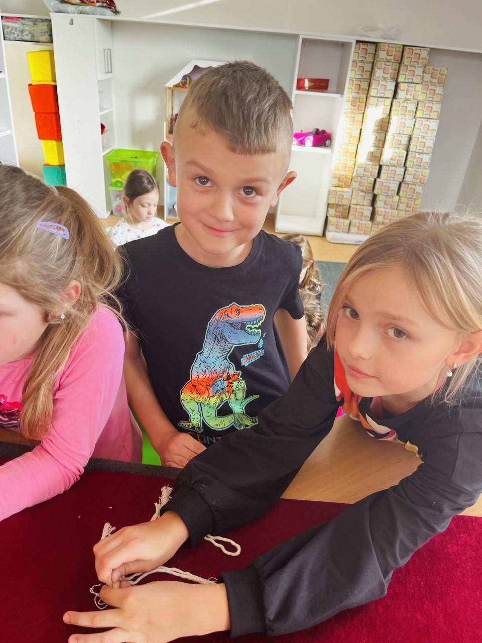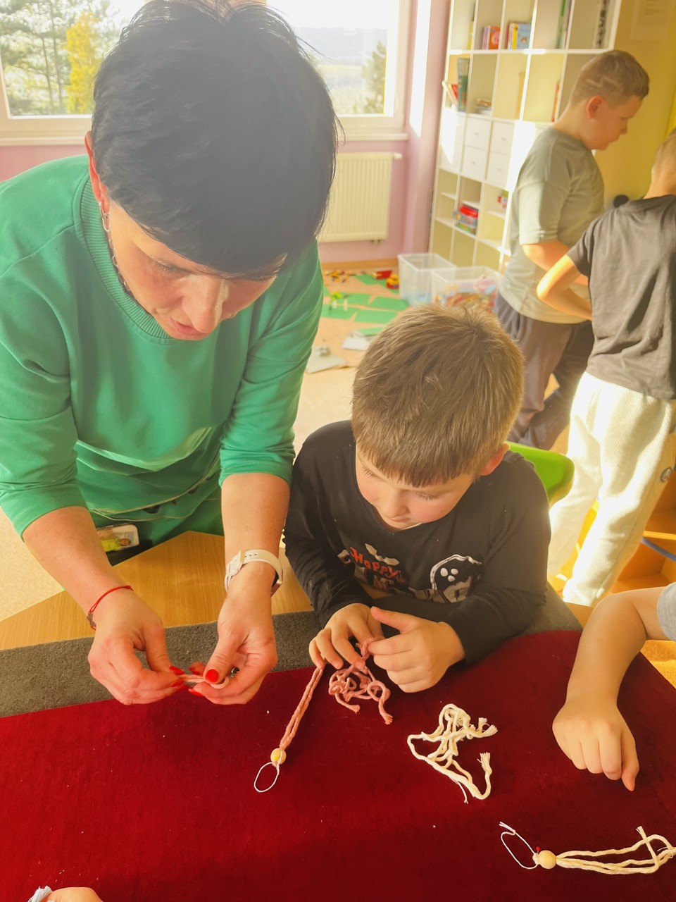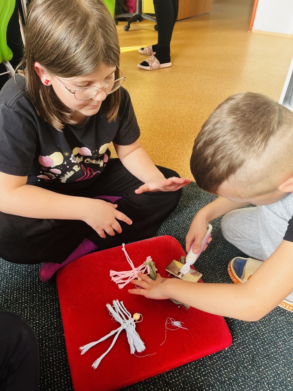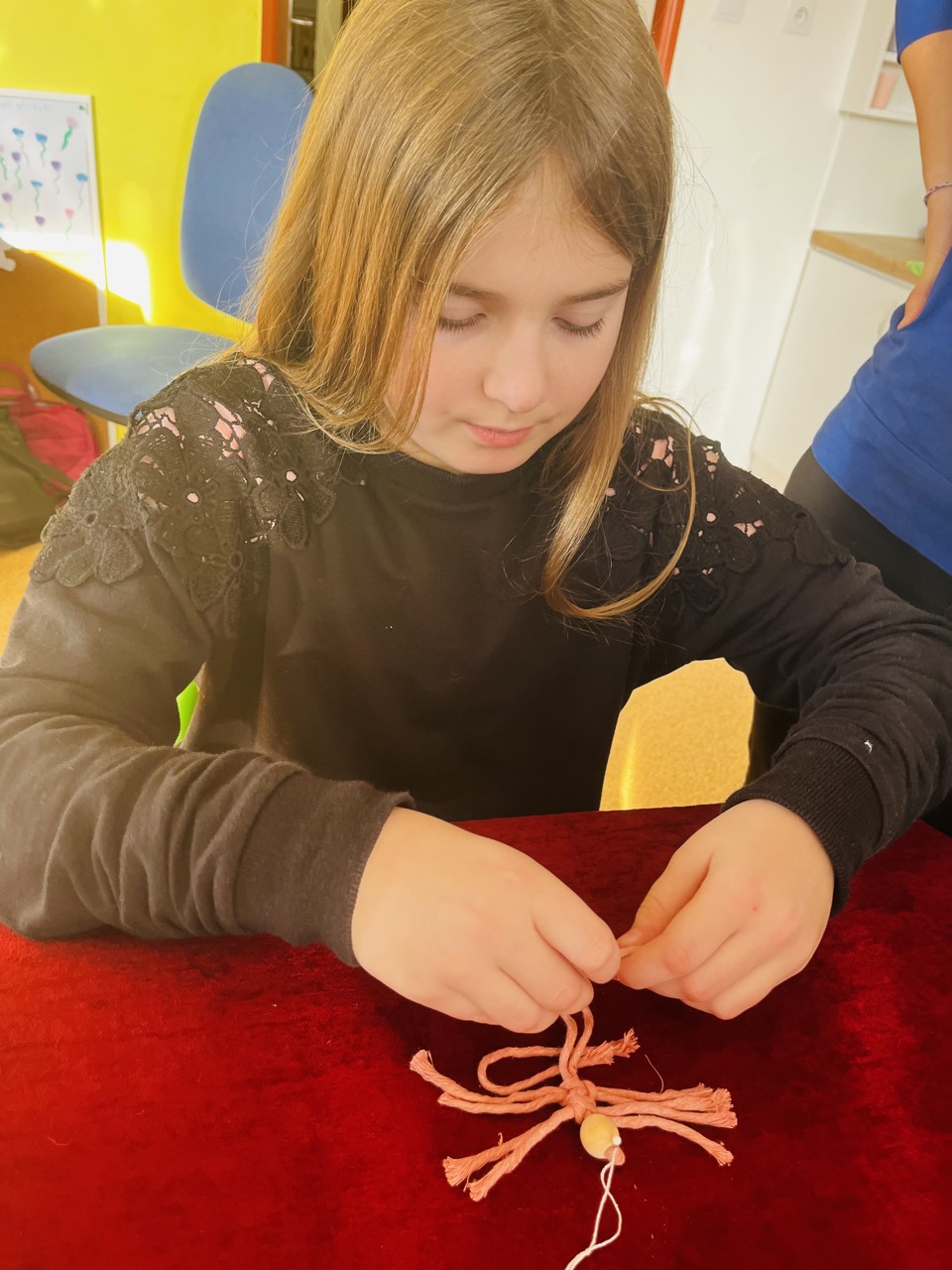 V předvánočním čase, který je pro většinu dospěláků náročným obdobím, nám maminka naší žačky, paní Marcela Mannsfeld připravila pro děti ze školní družiny krásný workshop. Macramé je technika drhání, při které se splétají uzly šňůrek bez pomoci jehlic nebo háčků. Děti si vlastnoručně vyrobily barevné andělíčky a paní Mannsfeld je zafixuje tak, aby andílci mohli sloužit jako vánoční ozdoba nebo dárek. Děkujeme mamince Ninušky, žákyně 3. ročníku za přípravu materiálu, zorganizování dílničky a dokončení andělíčků. Spolupráce s rodiči je pro nás velmi důležitá a vážíme si každé takové nabídky.