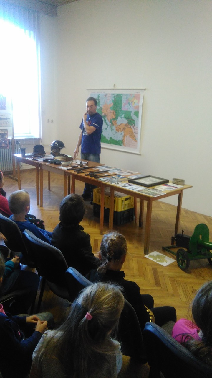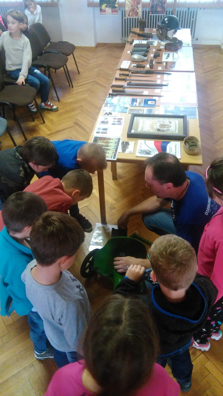 Nebylo to však nadlouho. Paní Mikesková, korytňanská knihovnice, spolu s paní Křížovou a panem Markem Jančou připravili pro naše školáky besedu k 100. výročí vzniku Československé republiky. V první části besedy si připravil pan Janča spoustu zajímavostí týkajících se 1. světové války, nejzajímavější pro děti byly asi různé válečné artefakty – nože, bodáky, staré plynové masky, identifikační štítky a spoustu dalších neobvyklých věcí. Po této velmi poučné části se školáci společně s paní učitelkami přesunuli do prostor místní knihovny, kde pro ně měla paní Křížová s paní Mikeskovou připravenou prezentaci o osobnostech, které se zasloužily o vznik Československé republiky. Věříme, že si naši školáci z této jistě zajímavé a naučné besedy odnesly vědomosti, které pro ně budou přínosné.