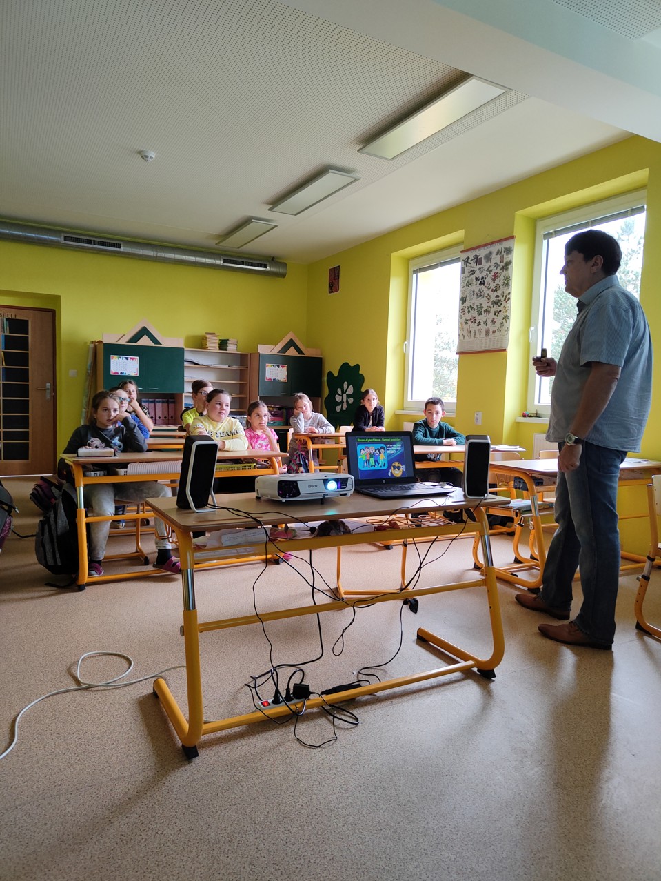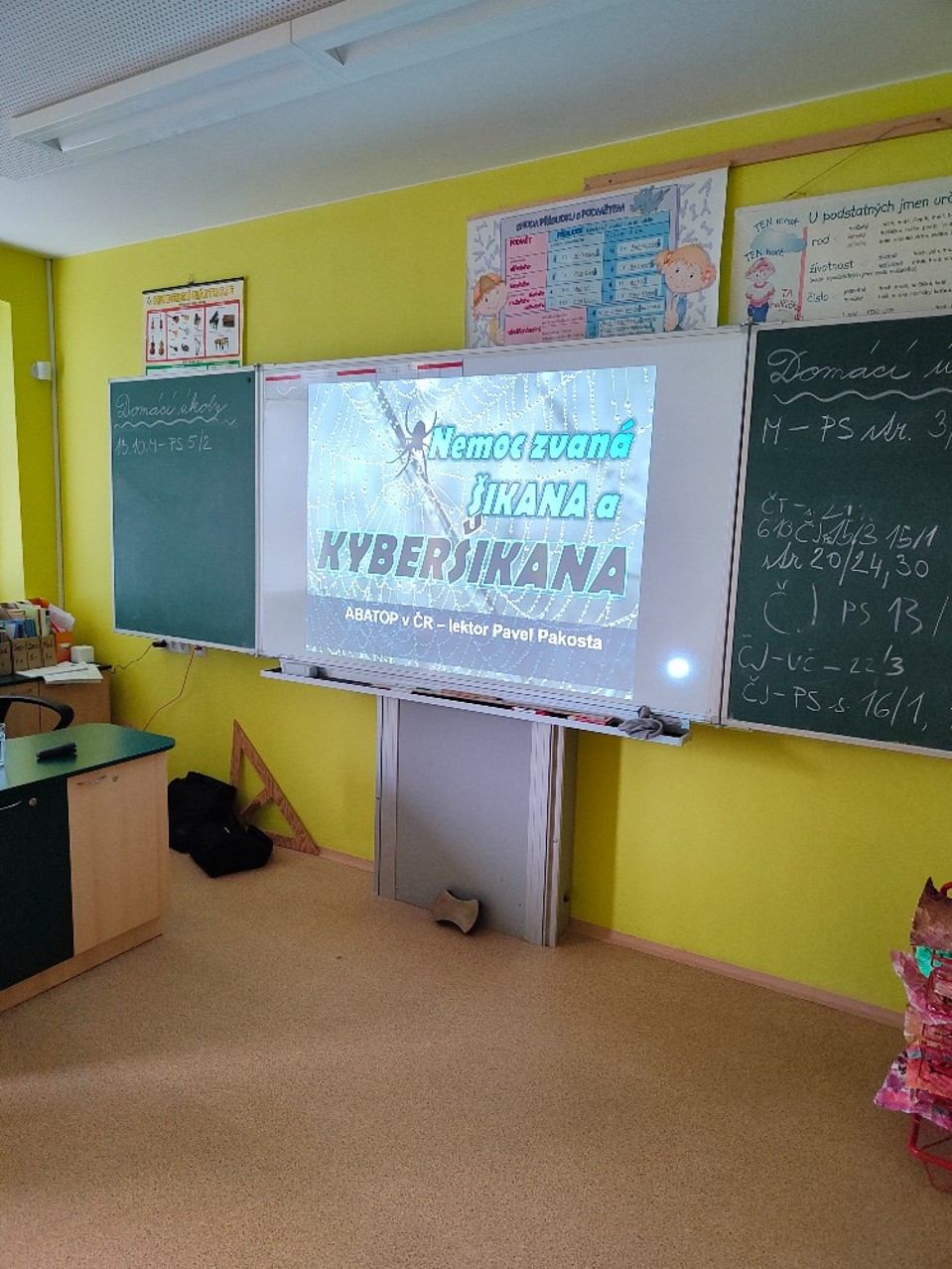 Ve středu 13. října přijal pozvání a uskutečnil besedu pan Pavel Pakosta. Přednáška byla určená žákům 4. a 5. ročníku. Tématem byla šikana a kyberšikana. Na tato citlivá témata s žáky naší školy samy často hovoříme, ale platí jedno známé pořekadlo – „Opakování matka moudrosti“. Starší školáci se už běžně pohybují v internetovém prostředí, proto považujeme téma kyberšikany za velmi důležité. Mnohé z řečeného školáci už slyšeli, viděli nebo se stali přímými účastníky. Naším cílem nebylo žáky strašit tím, co nemilé je může ve virtuálním světě potkat, ale upozornit je na nebezpečí, které internet skrývá. S nadsázkou by se dalo říci, že internet je dobrý sluha, ale špatný pán. A to je třeba, aby měly všechny děti na paměti.