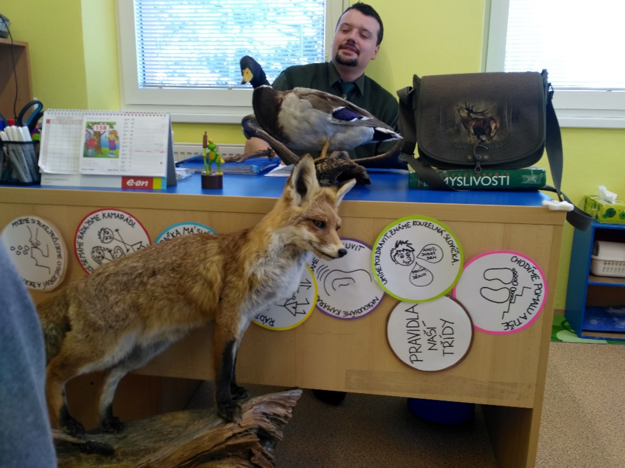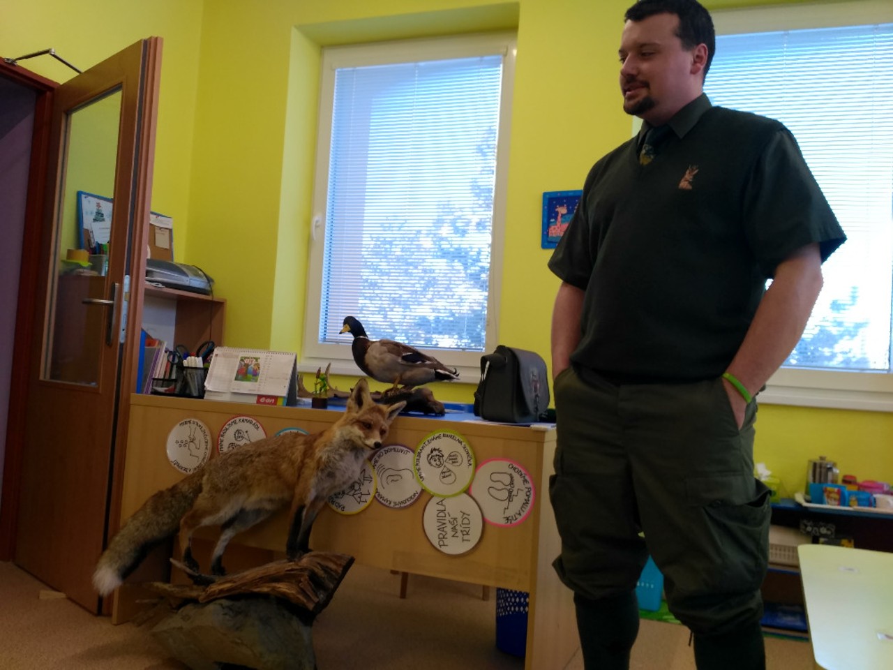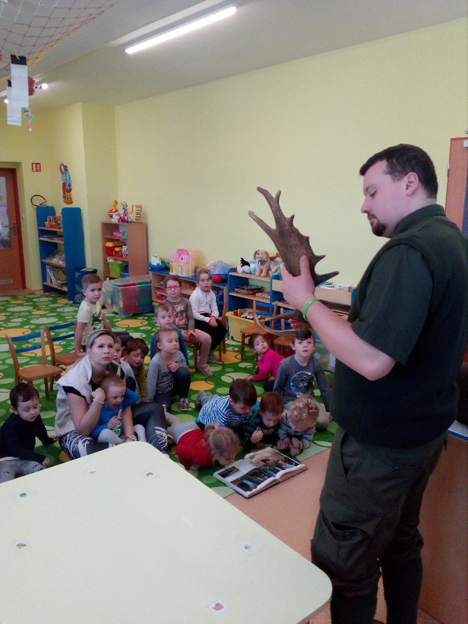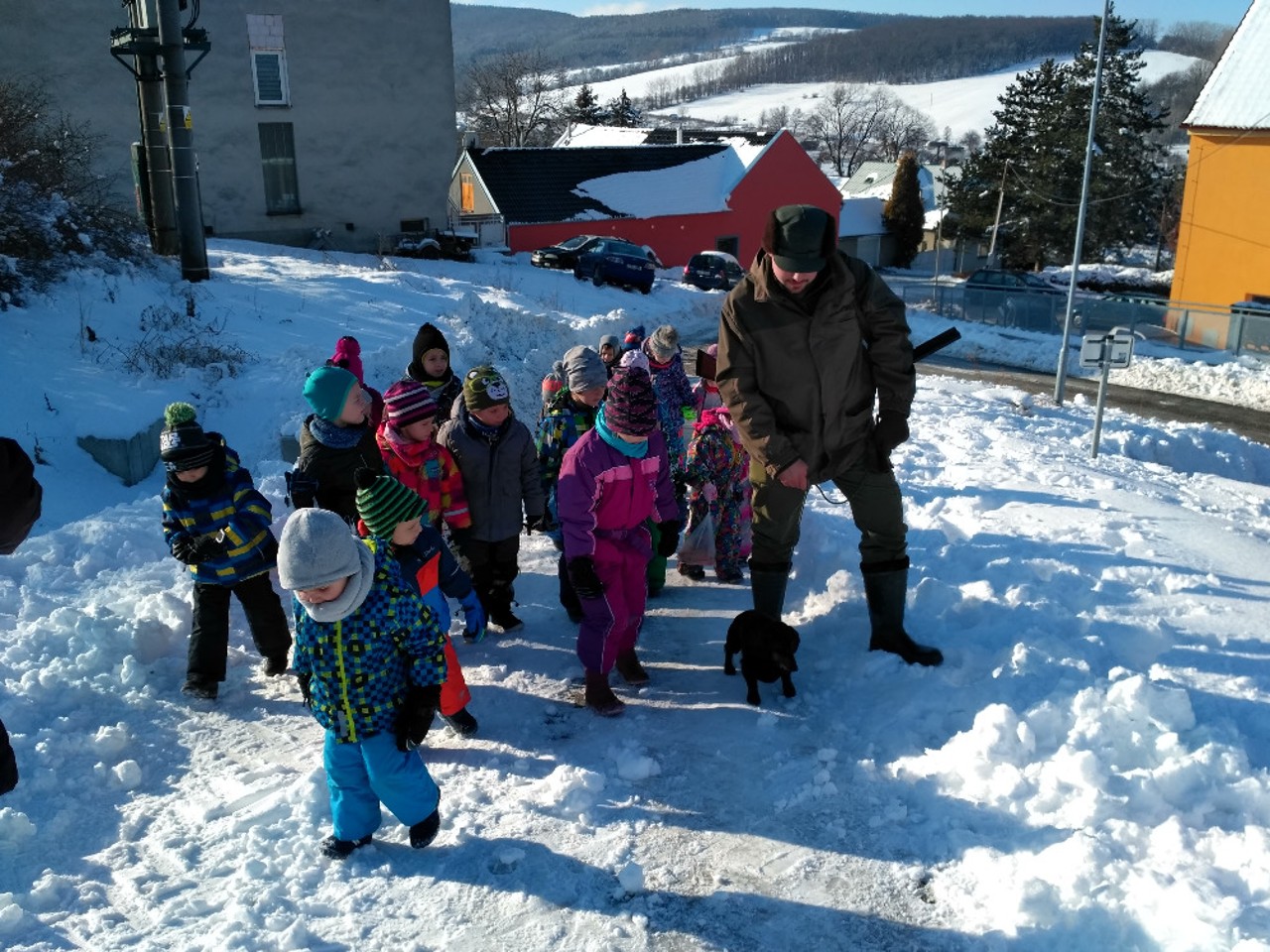 Ve středu navštívil naši mateřskou školu myslivec pan Petr Mahdal z Korytné. Vyprávěl dětem o lesní zvěři a o péči v zimním období. O tom, jak se lesní zvěř stravuje a co vše můžeme udělat proto, abychom jí v zimním období pomohli. Přinesl dětem i názorné ukázky ve formě vycpaných zvířat. Po krátké besedě a ukázkách následovala vycházka do lesa k nedalekému krmelci. Dětem se vycházka moc líbila, pan myslivec s sebou vzal i svého jezevčíka, který dětem dělal společnost. Nasypali jsme krmení zvířátkům a viděli jsme i stádo daňků, pasoucích se na poli. Děkujeme tímto panu myslivci Mahdalovi za krásnou a poučnou besedu s vycházkou do lesa a těšíme se na další setkání.