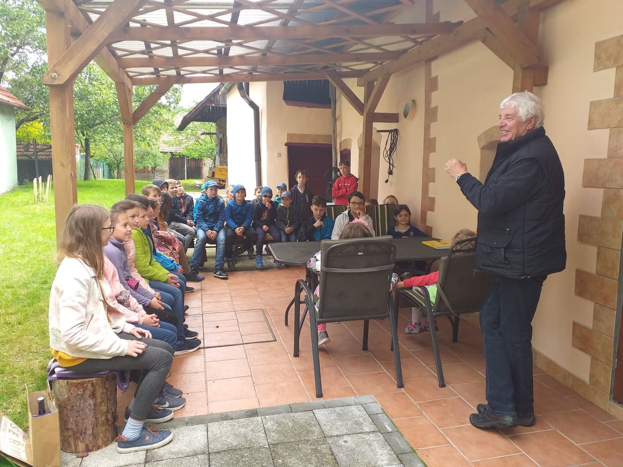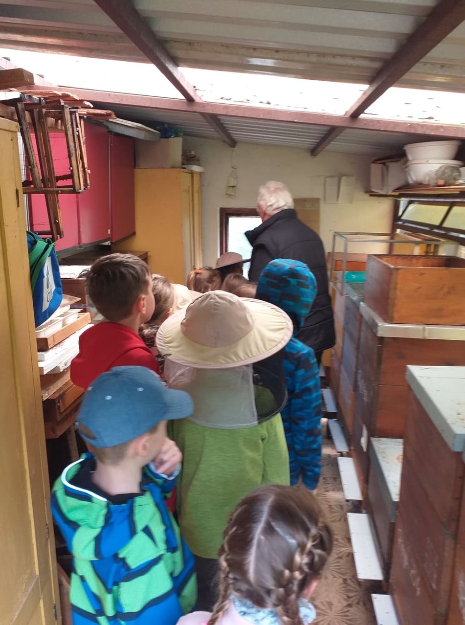 V pátek jsme navštívili místního včelaře pana Haničince, který nám ukázal své včelí království. Které budoval postupně od dvanáctiletého chlapce až do současnosti . Dětem poutavou formou vyprávěl, jak to u takových včelek chodí. Paní Haničincová nachystala dětem medové perníčky a med. Beseda se všem moc líbila.