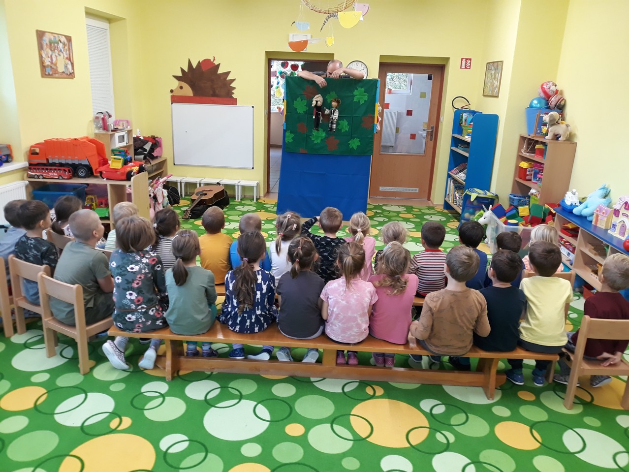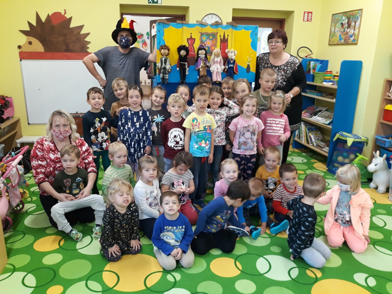 Ve čtvrtek 8.10.2020 nás již tradičně navštívil pan Taraba. Zahrál dětem krásnou a poučnou pohádku "O chytré princezně". Děti si při pohádce mohly zazpívat i zatančit a vše si moc užily.