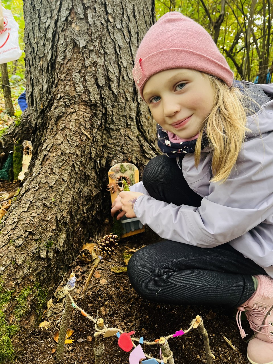 Děti často a rády vyrábějí cokoliv, proto paní vychovatelky využily tuto kreativní činnost dětí ve školní družině a vyrobily domečky pro skřítky z přírodních materiálů, které našly při procházkách v lese nebo na zahradě. Tato aktivita rozvíjí nejenom jejich kreativitu, ale i jemnou motoriku a vztah k přírodě. K výrobě všichni použili klacíky, kůru nebo staré bedýnky od ovoce jako základní konstrukci. Na střechu využili mech, šišky, sušené listí. Drobné větvičky, žaludy, bukvice, bobule posloužily jako dekorace a "nábytek". Při společné procházce do Prašnic „nainstalovali“ domečky ke kmenům stromů a vše pečlivě doladili. Hotové domečky šly hledat děti z mateřské školy. Aby zbytečně nebloudily, cestičku měli lemovanou muchomůrkami, které děti ze školní družiny vyrobily stejným způsobem jako domečky pro skřítky. Tato činnost podporuje týmovou práci a spolupráci, kde tvoří více dětí najednou. A velkým bonusem bylo také to, že jejich práce přinesla spoustu radosti i jejich malým kamarádům. A to se počítá!