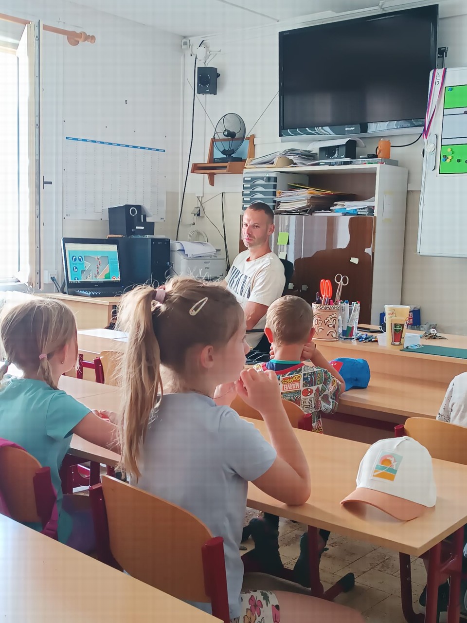 Slunečný pozdrav z dopravního hřištěv v Uh. Brodě vám posílají děti z korytňanské školky. I přes vysoké teploty zvládly jízdu a úkoly, které byly pro ně připraveny. Dostaly i dárečky a pochvalu od pana učitele. Osvěžující kopečková zmrzlina byla sladkou tečkou . Koupily si i nějaké drobnosti, nejen pro sebe, ale i pro své sourozence.