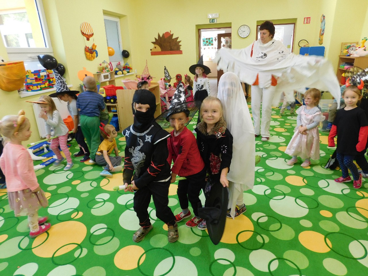 V ranním oparu ke školce přicházely roztodivné postavy čarodějnic, upírů a strašidel, které pak v budově zahájily své nekalé reje. Jejich „řádění“ neušly ani děti ZŠ a na své si přišli i zaměstnanci OÚ včele s panem starostou. Po nezbytném občerstvení a odpočinku se k nim přidali i někteří rodiče a děti ze ŠD. Ve školní jídelně vznikaly krásné dlabané dýně, které si navečer přišli rodiče i děti rozsvítit k památníku padlých. Děkujeme všem, kteří na akci přinesli výborné občerstvení z dýní.