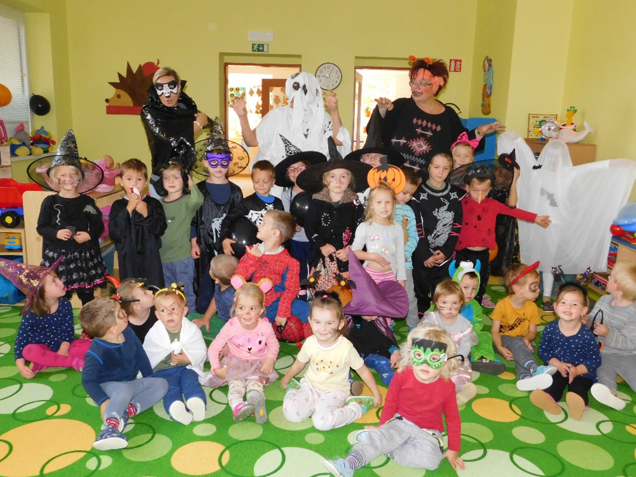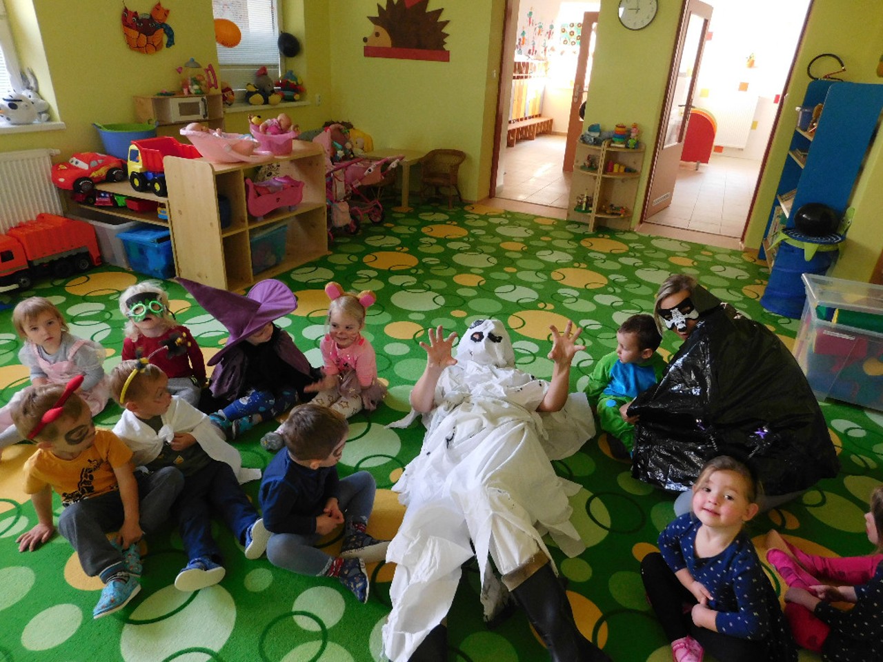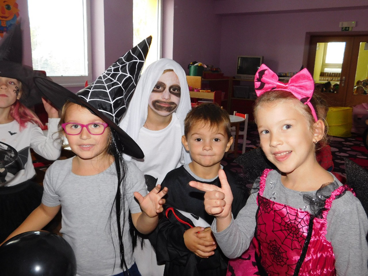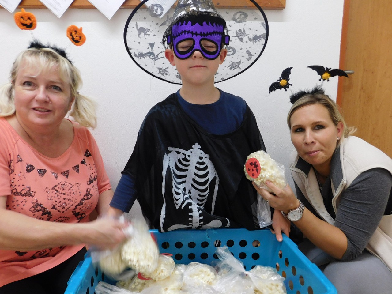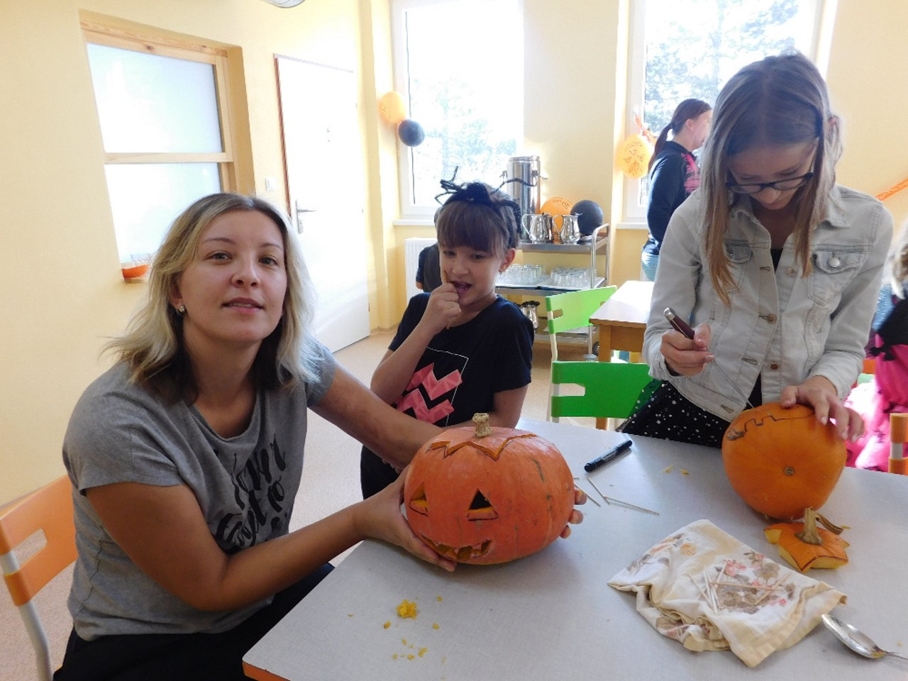 V ranním oparu ke školce přicházely roztodivné postavy čarodějnic, upírů a strašidel, které pak v budově zahájily své nekalé reje. Jejich „řádění“ neušly ani děti ZŠ a na své si přišli i zaměstnanci OÚ včele s panem starostou. Po nezbytném občerstvení a odpočinku se k nim přidali i někteří rodiče a děti ze ŠD. Ve školní jídelně vznikaly krásné dlabané dýně, které si navečer přišli rodiče i děti rozsvítit k památníku padlých. Děkujeme všem, kteří na akci přinesli výborné občerstvení z dýní.