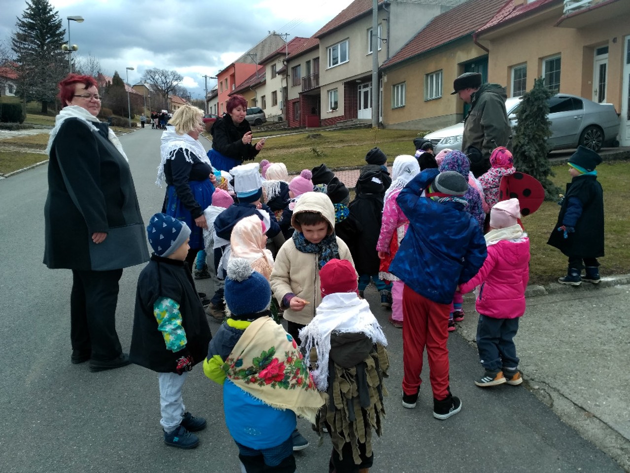 Tradiční úterní fašanková obchůzka obcí začala tancem a zpěvem u obecního úřadu, nechybělo občerstvení pro děti a žáky. Dlouhou trasu celou obcí, zvládly děti z mateřské školy bez obtíží, nebály se fašankových masek a za svoji vytrvalost, zpěv a tanec, dostaly odměny v podobě sladkého pohoštění od místních občanů.