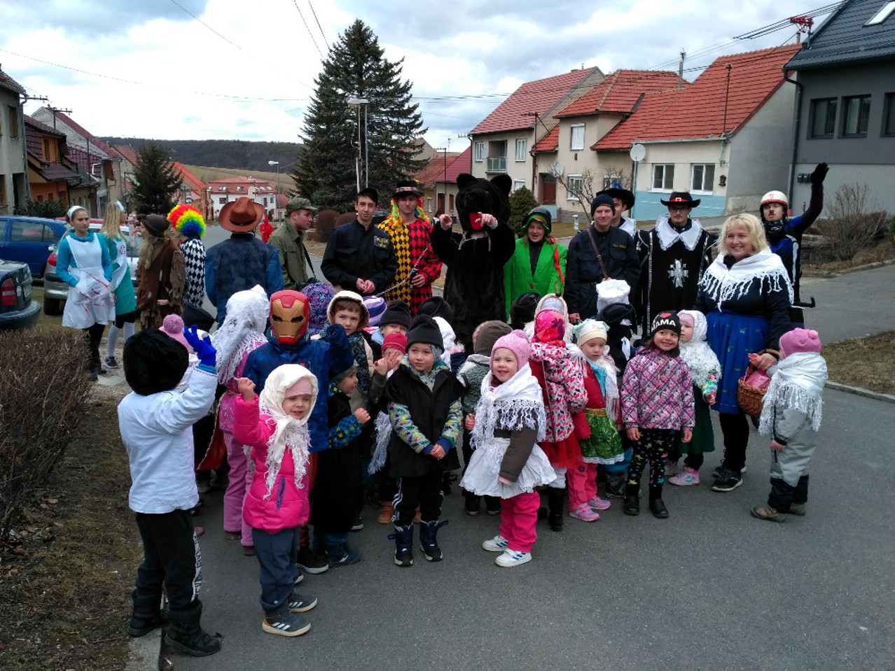 Tradiční úterní fašanková obchůzka obcí začala tancem a zpěvem u obecního úřadu, nechybělo občerstvení pro děti a žáky. Dlouhou trasu celou obcí, zvládly děti z mateřské školy bez obtíží, nebály se fašankových masek a za svoji vytrvalost, zpěv a tanec, dostaly odměny v podobě sladkého pohoštění od místních občanů.