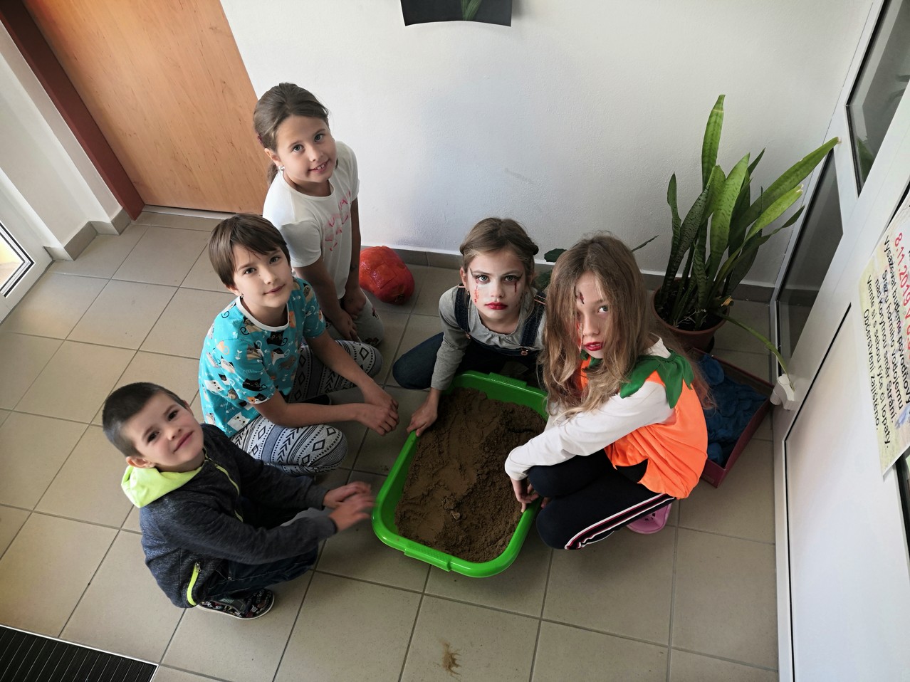 1. listopadu dopoledne nám ve škole páťáci a čtvrťáci přichystali strašidelný program. Prvňáci, druháci a my jsme se rozdělili do skupin a plnili jsme úkoly, které nám strašidelně vypadající čtvrťáci a páťáci připravili. Lovili jsme pavouky „ve sklenici s krví“. Šipkami jsme házeli do balónků, ve kterých byla sladká odměna. V písku jsme hledali „kosti“. Lozili jsme mezi pavučinami a honil nás chlupatý pavouk. Poté jsme hledali strašidla. Poslední disciplína byla střelba Nerf pistolí na „kostlivce a pavouky“. Nakonec bylo vyhodnocení soutěžních týmů. Vítězové dostali sladkou a slanou odměnu. Moc se nám to líbilo, chtěli bychom našim starším spolužákům poděkovat za to, že byli tak hodní a ochotní nám tento den připravit.