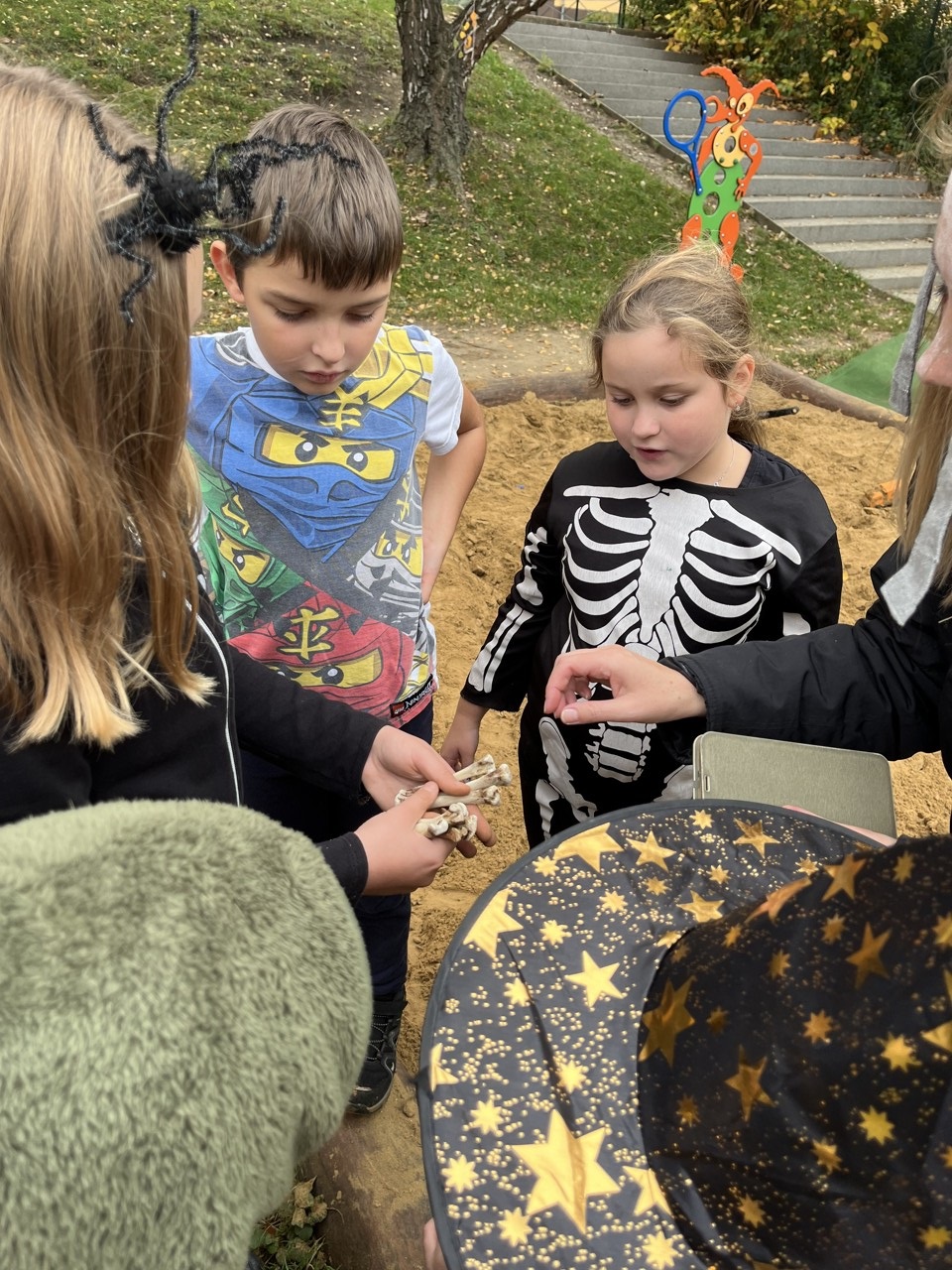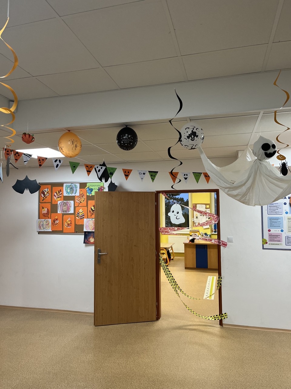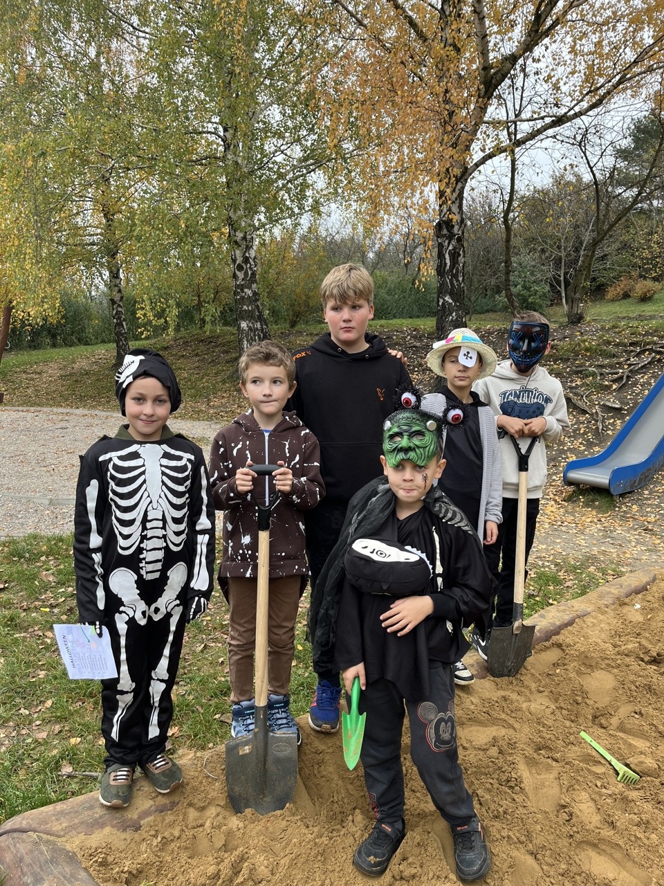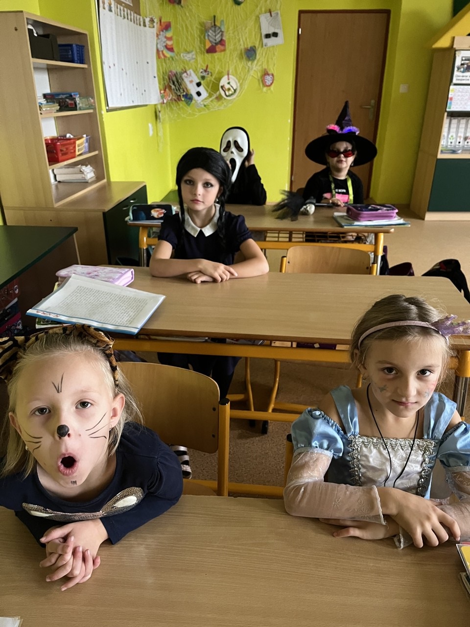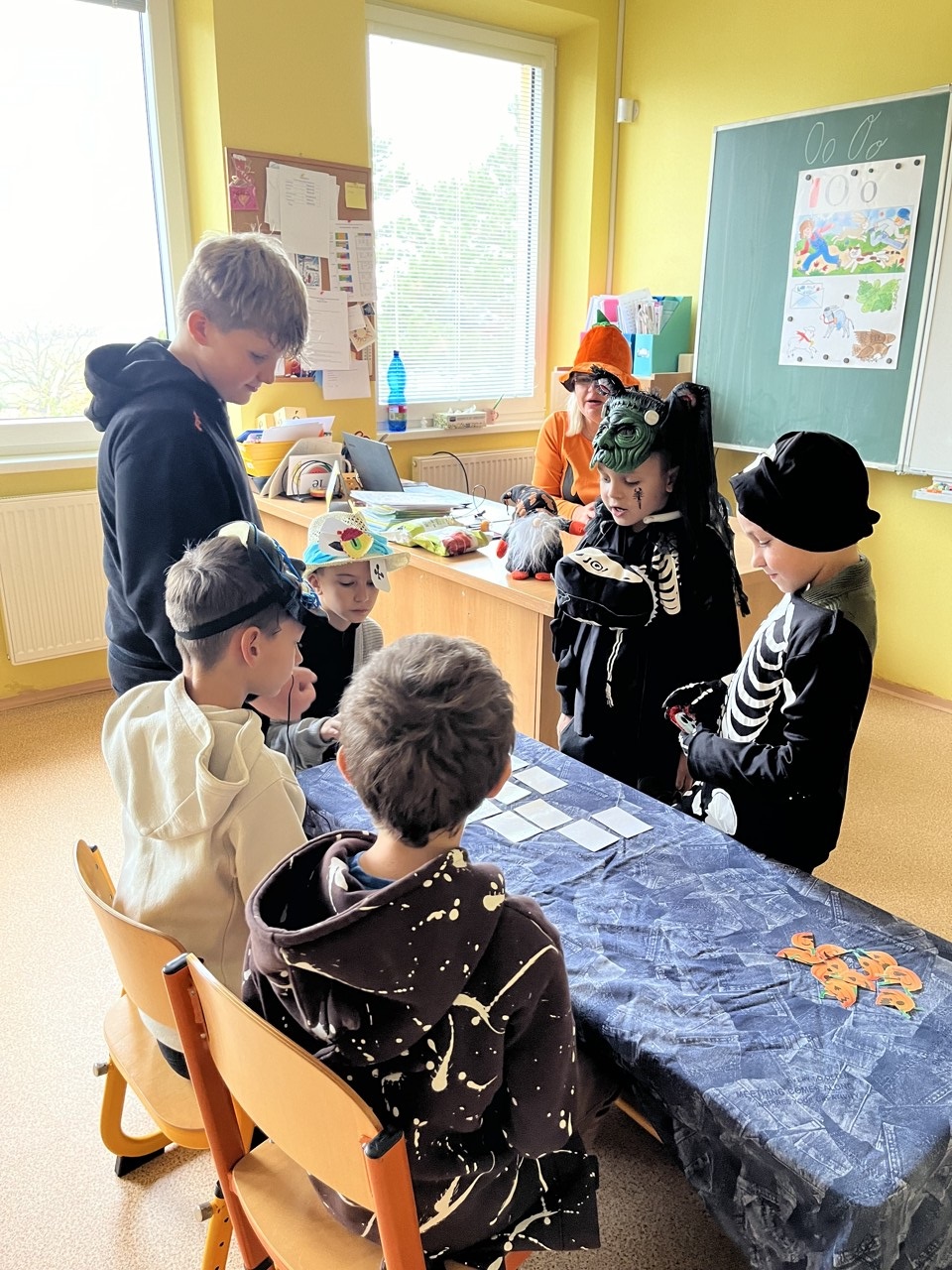 Dnešní den patřil v naší škole Halloweenu. Každá čarodějnice, smrtka, kostra, strašidlo, vřískot aj. si mohli užít zaslouženou zábavu v různých strašidelných doupatech. Celý program byl v režii paní učitelek, které se také patřičně zamaskovaly. Na pěti zastávkách plnili žáci úkoly jako je třeba lovení jablek v míse s vodou, hledání pavouků v dýni, halloweenské pexeso nebo posunování pavoka bludištěm. Za každý splněný úkol dostali sladkou odměnu. Do přípravy Halloweenu se zapojily i některé maminky, ty připravily dětem vskutku strašidelné pochoutky. Děkujeme jim za pomoc. Po splnění všech úkolů dostali úplně všichni za odměnu halloweenské žvýkačkové lízátko.