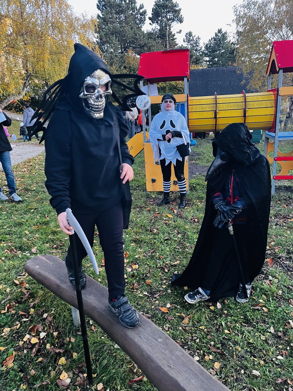 Halloween ve škole může mít mnoho podob. My jsem zvolili společní projekt – spolupráce mezi mateřskou školou a základní školou je pro naše fungování zcela zásadní. Včerejší odpoledne bylo speciální – projektové, kdy se žáci pátého ročníku spolu s paní učitelkami a paní asistentkami ze školky i ze školy střídali na šesti stanovištích s halloweenskou tematikou. Některé děti a všechny paní učitelky i paní asistentky přišly v halloweenských kostýmech. Rodiče pomohli připravit halloweenské občerstvení a po zdolání všech strašidelných úkolů čekala na děti i zasloužená odměna. Všichni se dobře bavili, děti si užily strašidelně vyzdobenou školní zahradu, rodiče sdíleli své dojmy a sledovali aktivity svých ratolestí. Naším cílem bylo zábavnou a bezpečnou formou přiblížit dětem cizí tradici, rozvíjet jejich kreativitu a podpořit týmovou spolupráci a společenskou sounáležitost.