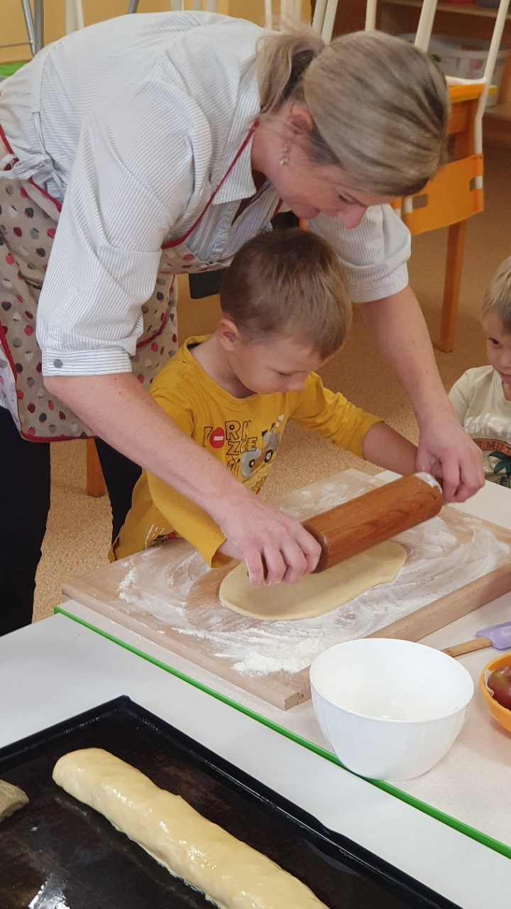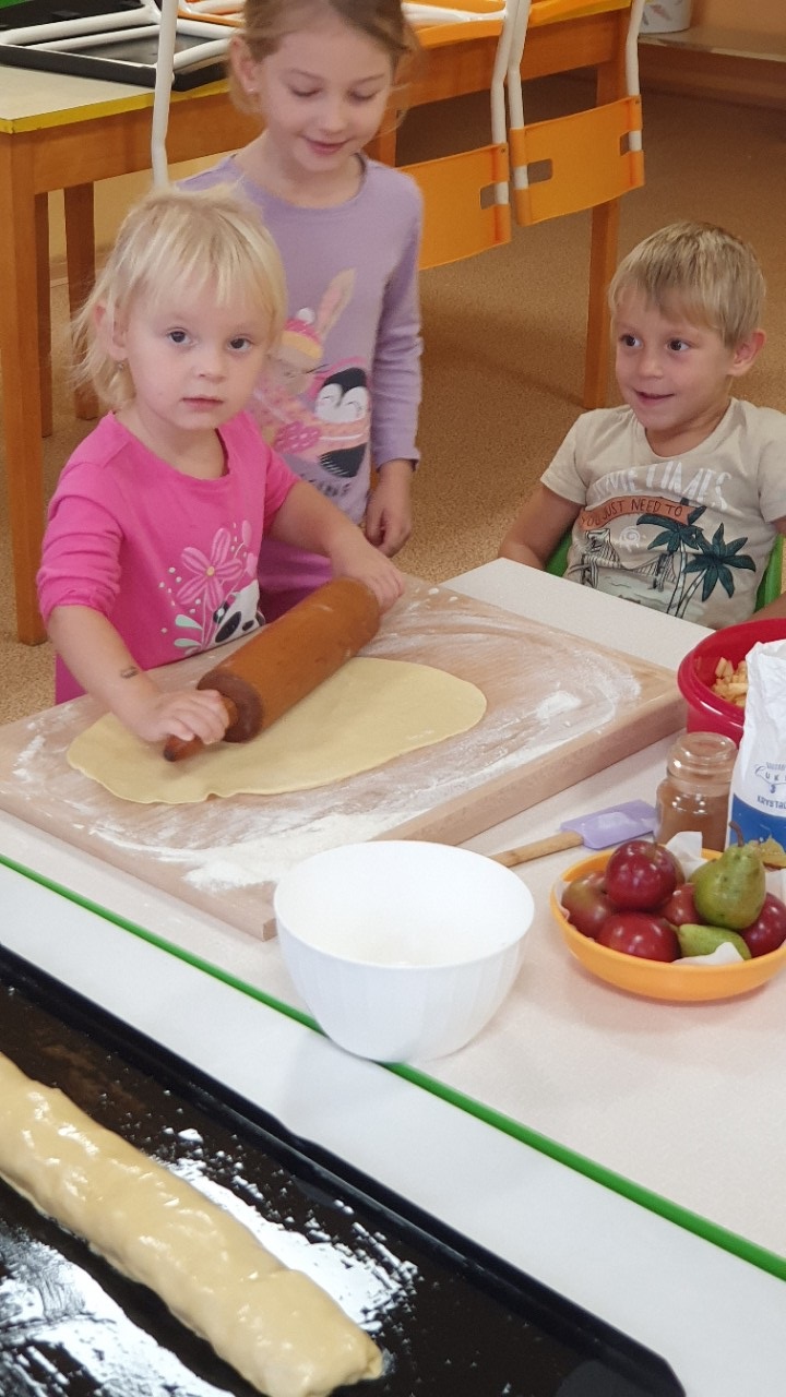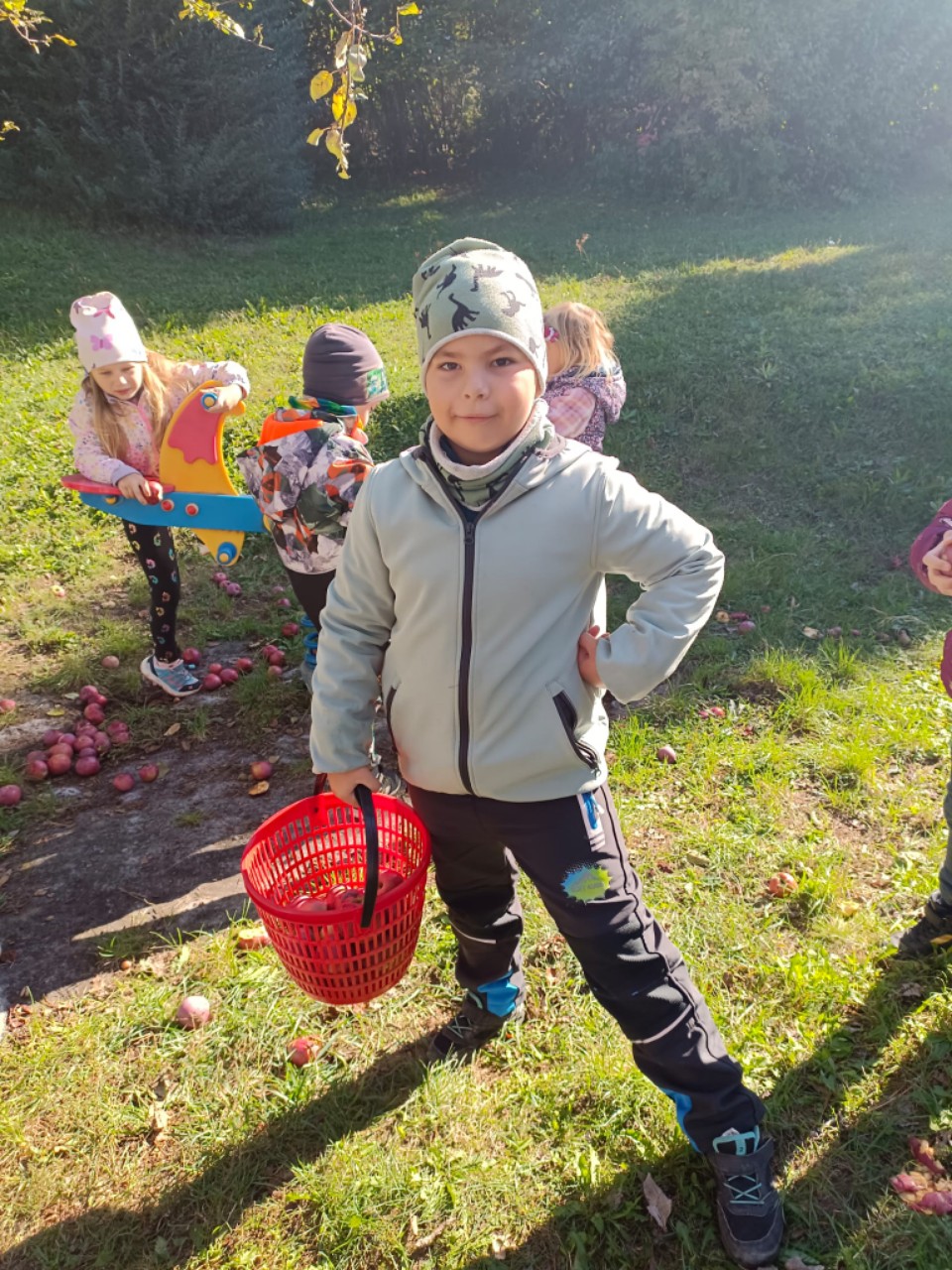 Červená jablíčka, rostoucí v blízkosti zahrady se stala cílem výpravy mateřáků s košíkem. Ta nejpěknější byla sesbírána, patřičně ochutnána, očištěna a připravena na pečení školkového štrůdlu.