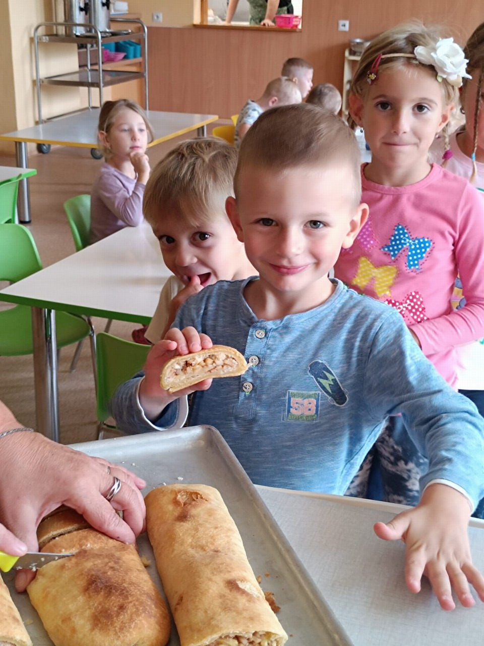Ten se pak pekl následující den za pomoci všech dětí. Blažené výrazy v jejich tvářích při ochutnávání upečené dobrůtky se staly důkazem, jak moc se jejich společné dílo podařilo.