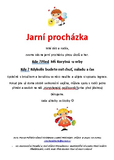 Úvodní stránka » Mateřská škola » Aktuality MŠ » Pozvánka - Jarní procházka