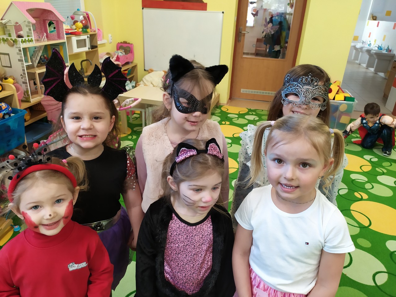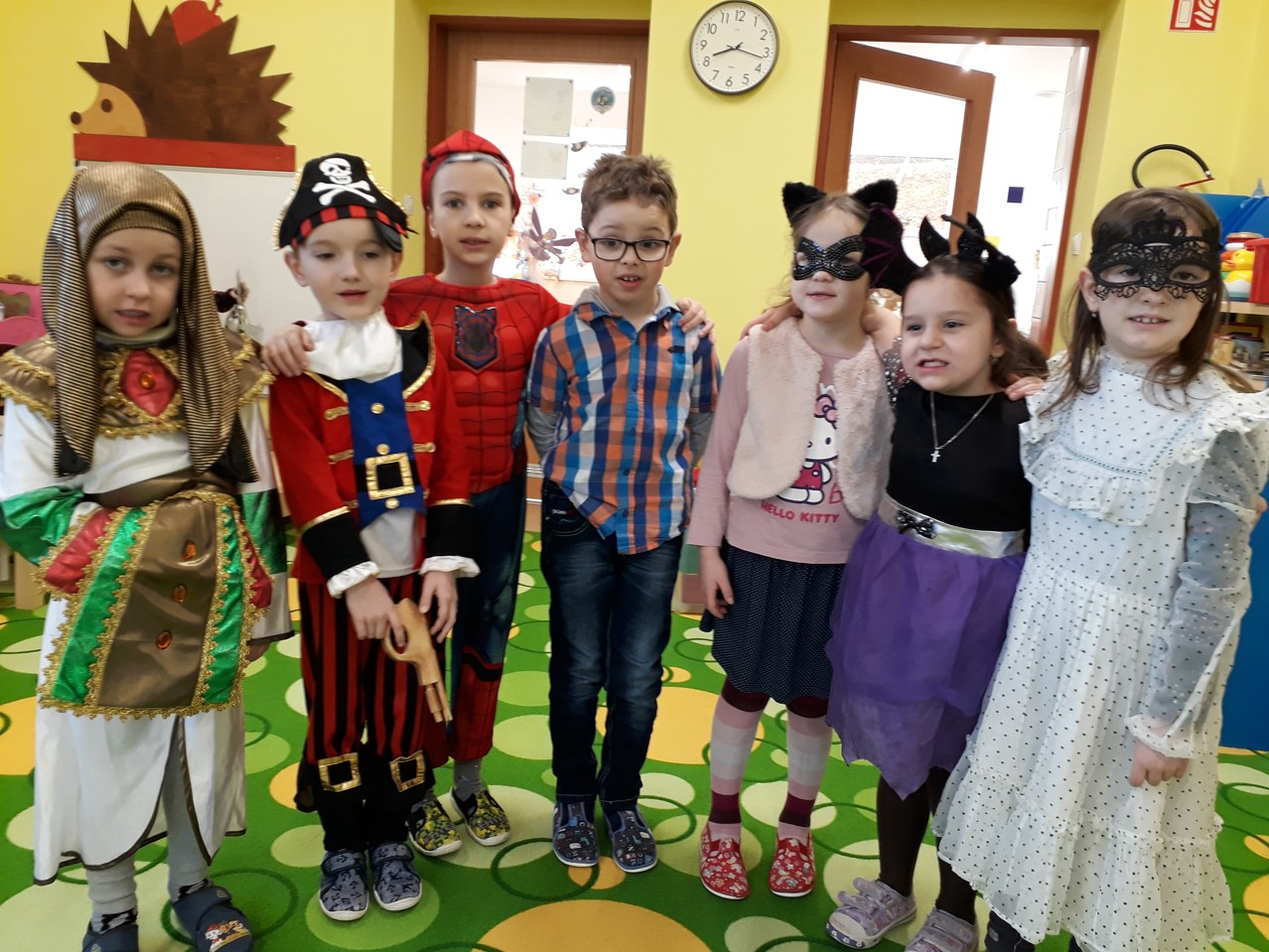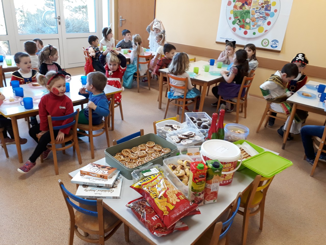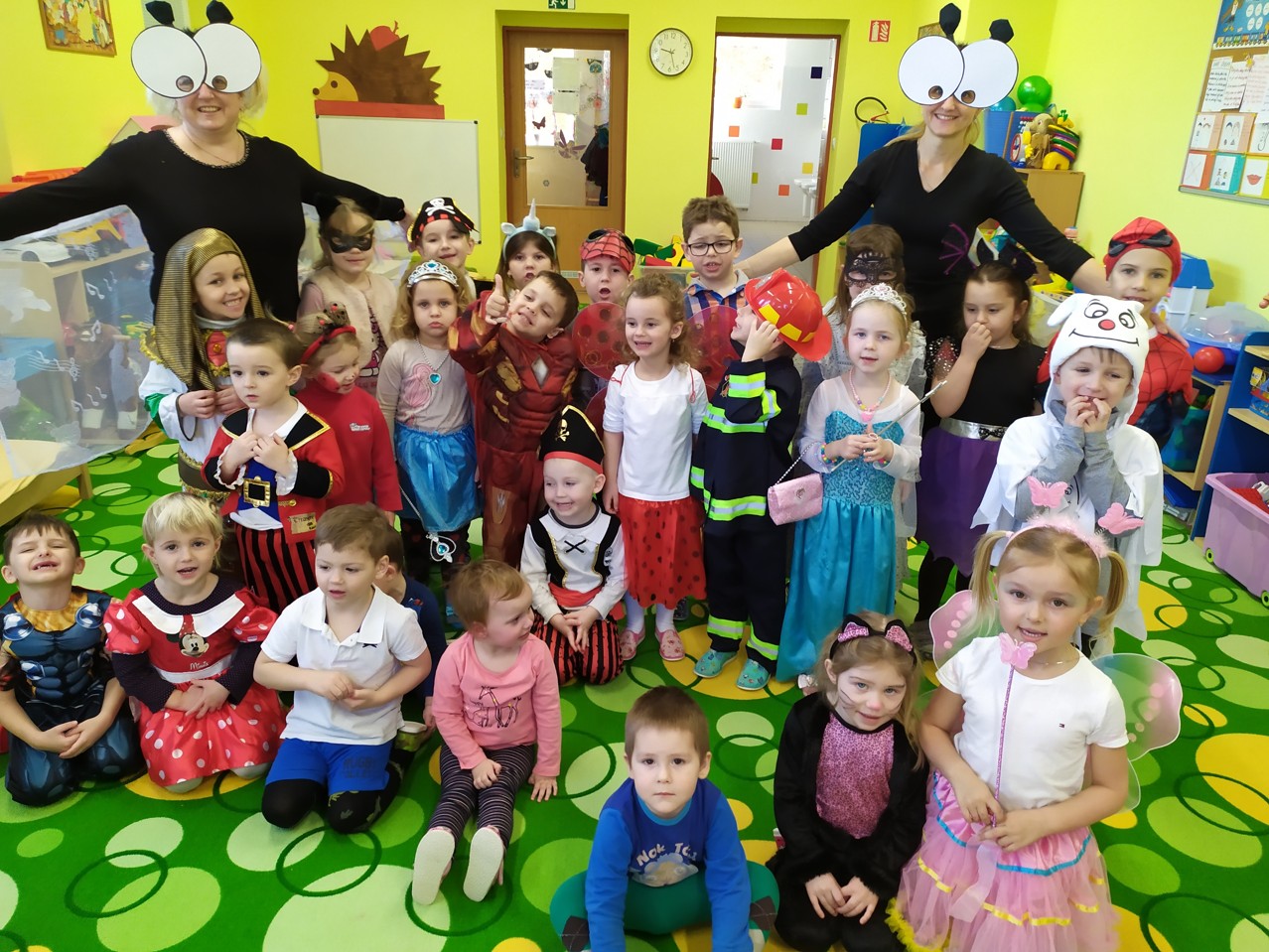 Po celé čtvrteční dopoledne byla v naší školce slyšet hudba, smích a radost. To si dětičky užívaly karneval. Všechny děti měly krásné a originální kostýmy, které náležitě předvedly při diskotéce, soutěžích a průvodu masek. K tomu všemu si děti pochutnávaly na vynikajícím občerstvení od maminek. Maminkám, které přinesly dobroty, děkujeme.