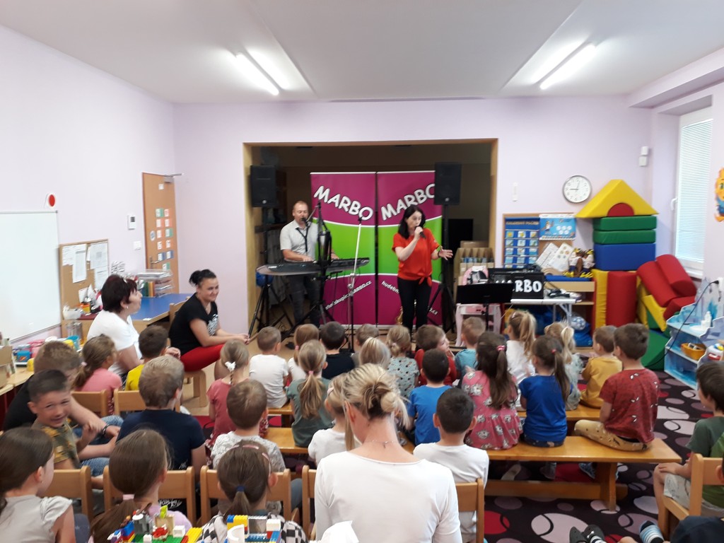 Kulturní agentura a současně i hudební skupina MARBO navštívila naši školku. Děti měly možnost si zazpívat se živou hudbou ozvučenou profesionální technikou. Líbivé melodie veselých písní je několikrát zvedly ze židlí a děti se tak spontánně zapojovaly do programu. Seznámily se s několika hudebními nástroji a dozvěděly se, jaké druhy písniček a skladeb známe a pro jaký účel vznikají.