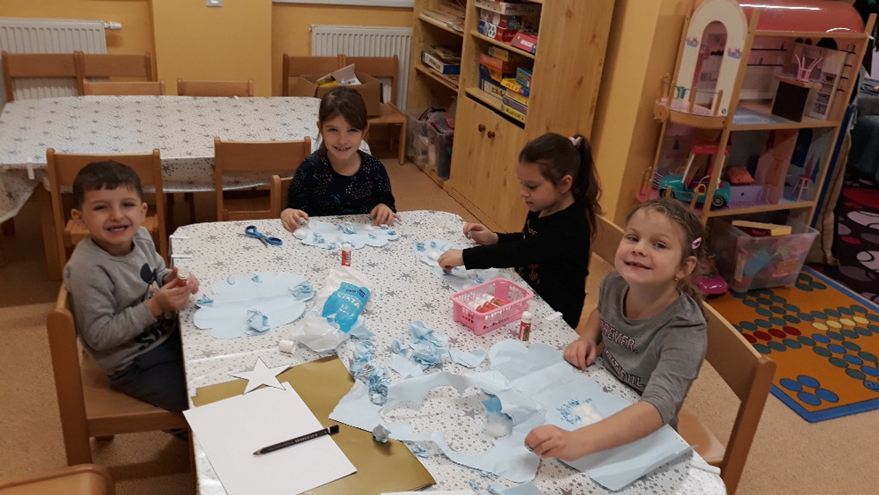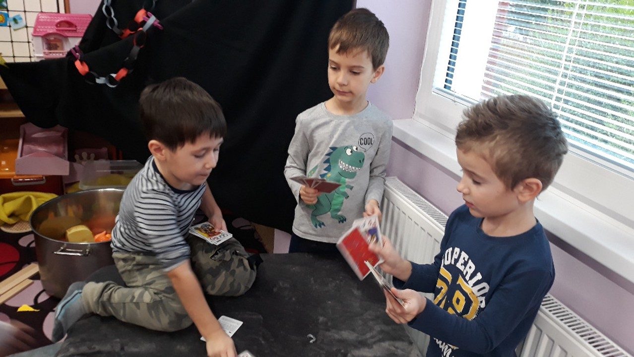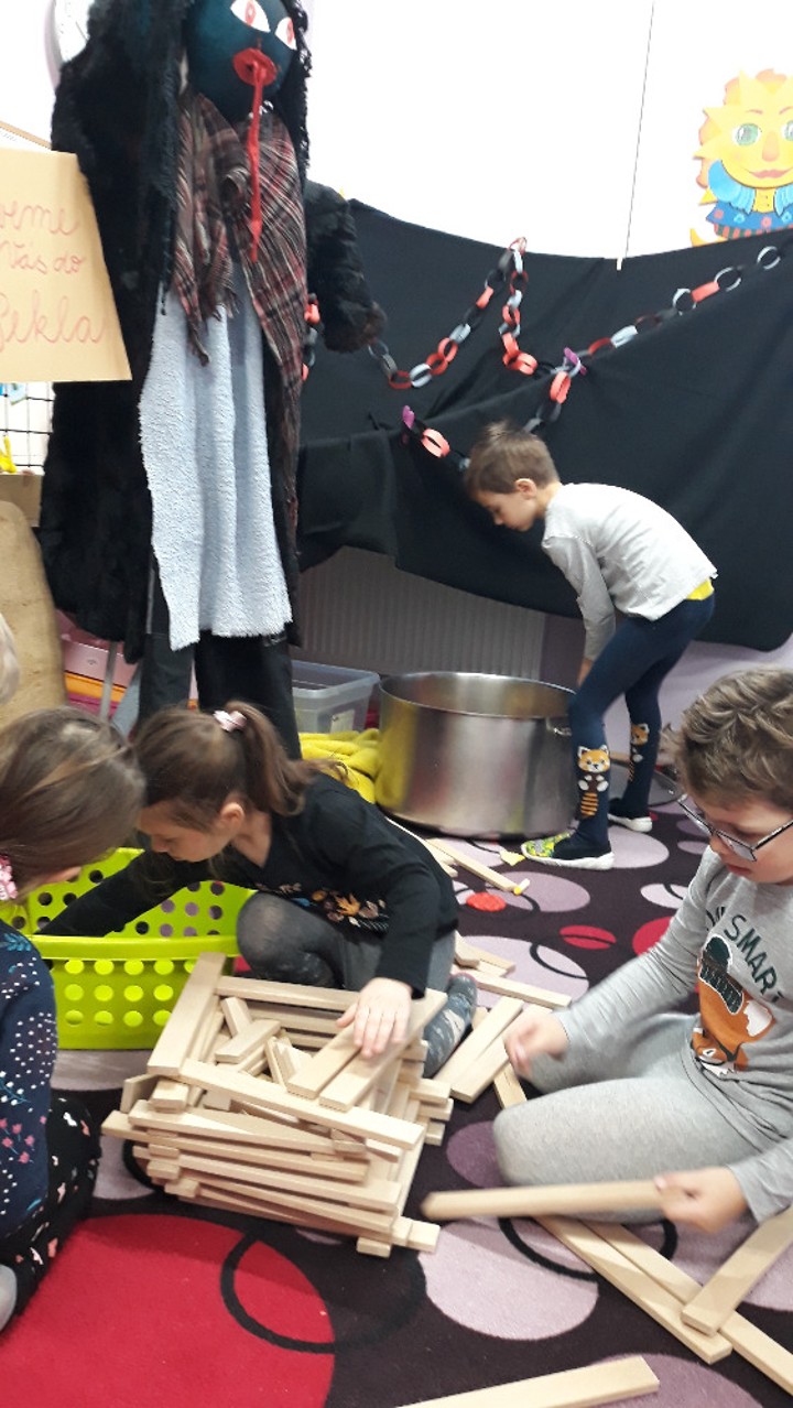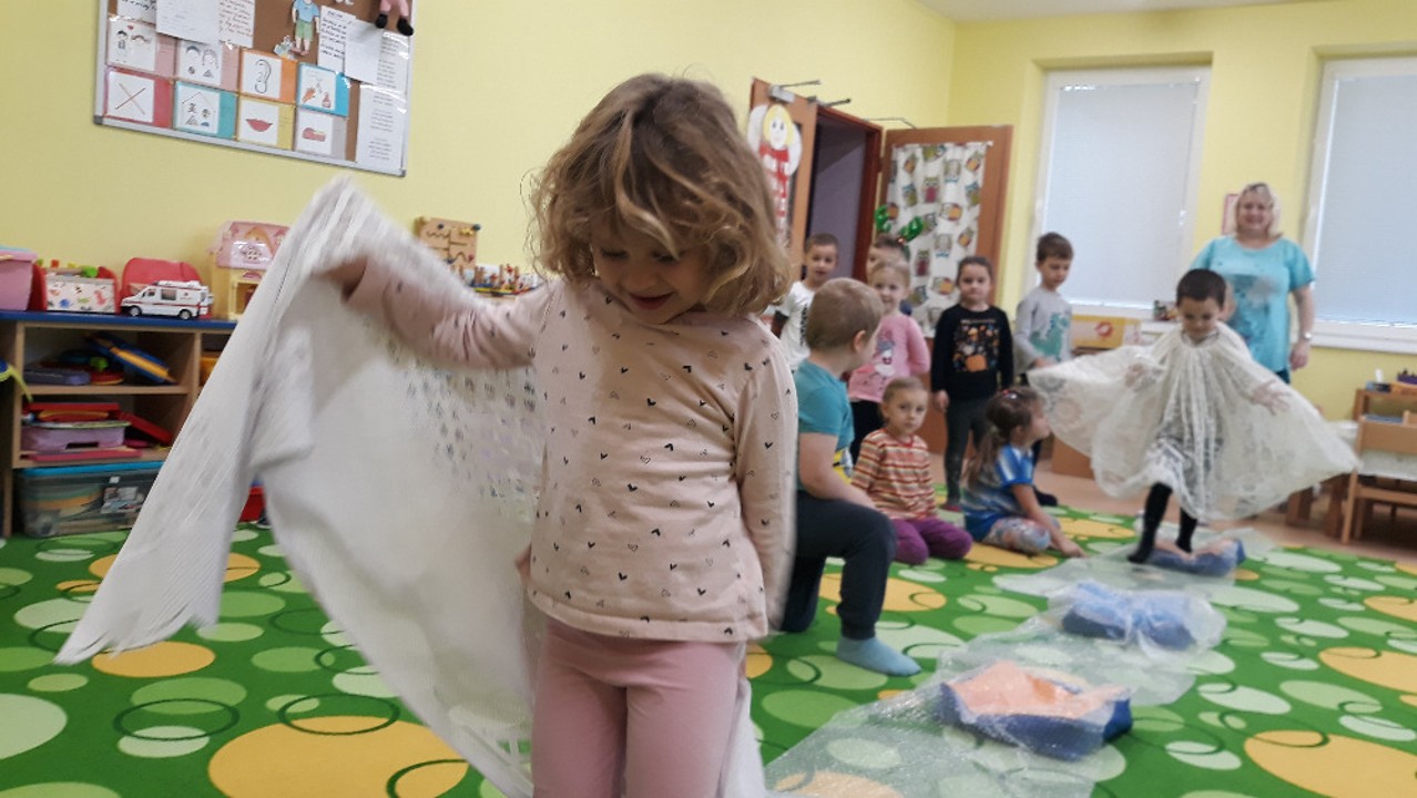 Na příchod Mikulášské družiny jsme se ve školce připravovali už týden předem. Ve třídě Motýlku vyrostlo „Peklíčko“ i „Nebíčko“. Děti si oba světy hezky vyzdobily a každý si mohl vybrat, kde si bude hrát, kde se cítí nejlépe. Společně jsme si pak hráli na andílky, kteří stoupají do nebe po nebeské cestě, bloudili jsme v andělské mlze a také jsme si uspořádali módní andělskou přehlídku spojenou s božskými tanečky. Čertům jsme vařili čertovský guláš, který každý dochutil svou tajnou přísadou. Protože se v našem „Peklíčku“ nebáli ani ti nejmenší, mohli jsme v pondělí 6. 12. přivítat vzácnou nebeskou i pekelnou návštěvu.