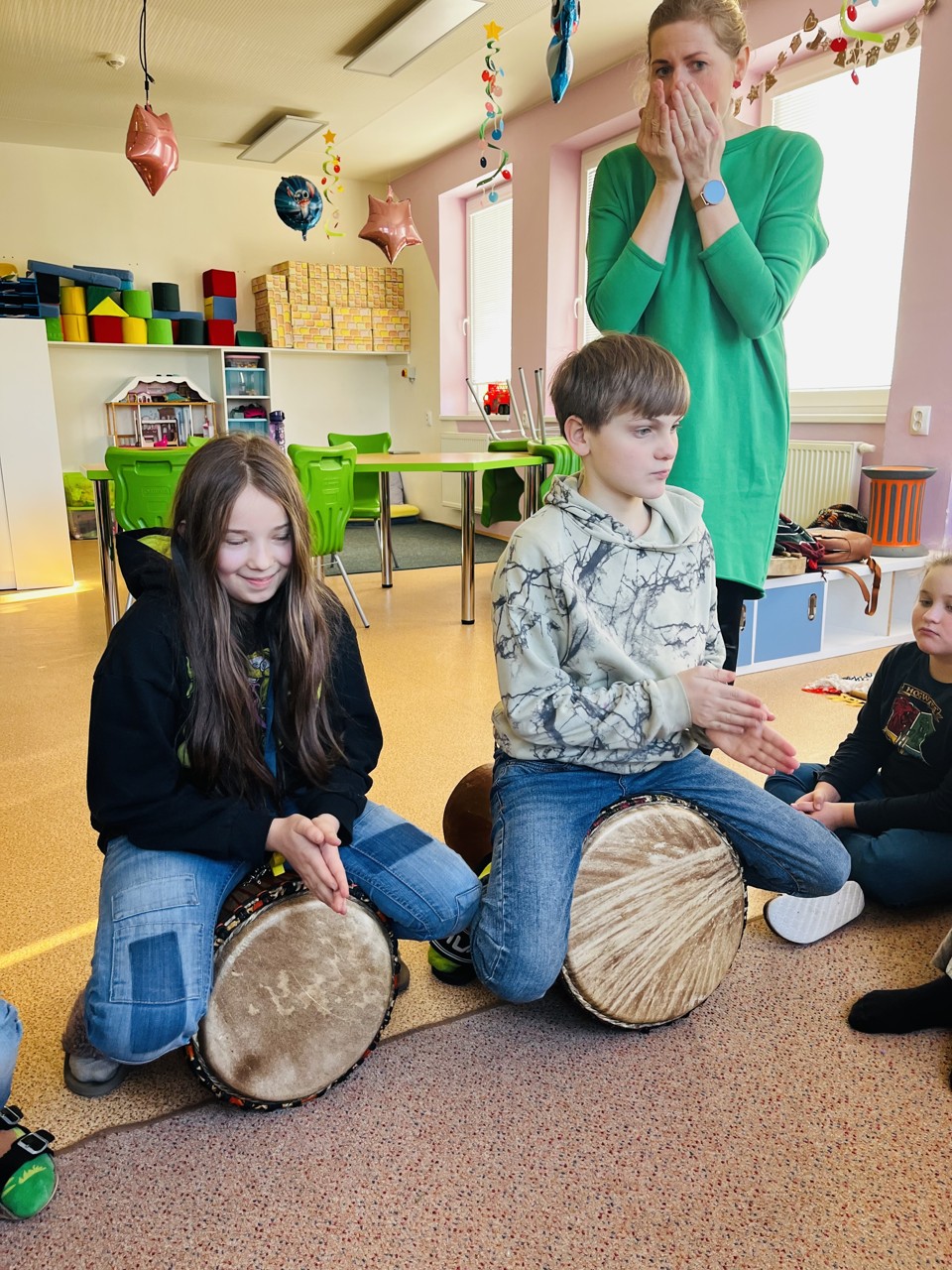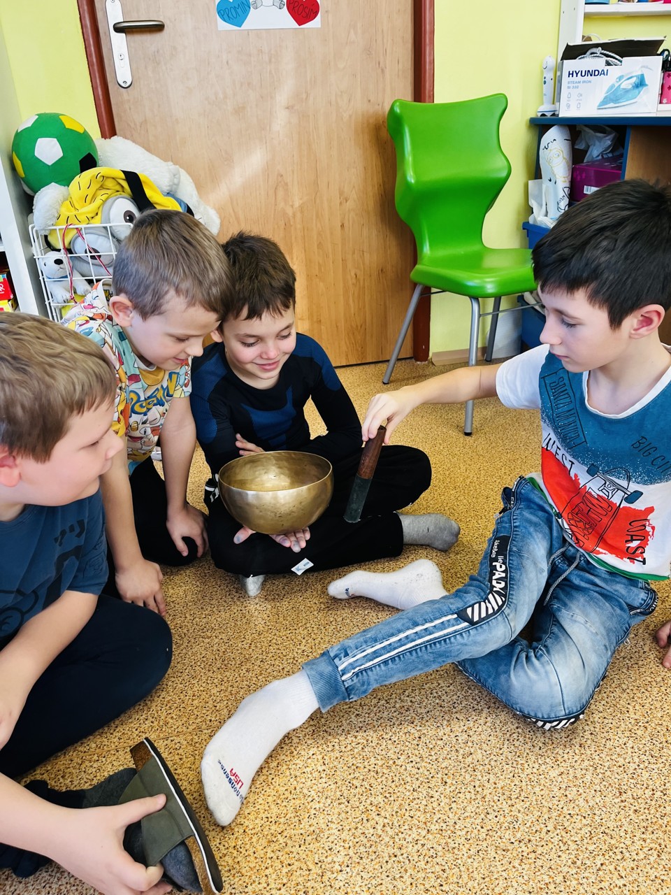 Dnes se mohli školáci seznámit s tím, jak funguje muzikoterapie. Tato technika pracuje se zvukem, rytmem, melodií a harmonií. Využívají se různé nástroje, často i ty, na které není nutné umět hrát, aby je mohl použít každý. Cílem této techniky je uvolnění, snížení stresu, zlepšení nálady, podpora paměti, ale i zlepšení mezilidských vztahů, podpora komunikace. Dnešní hodinka muzikoterapie zaujala všechny – malé, větší i ty nejstarší školáky.