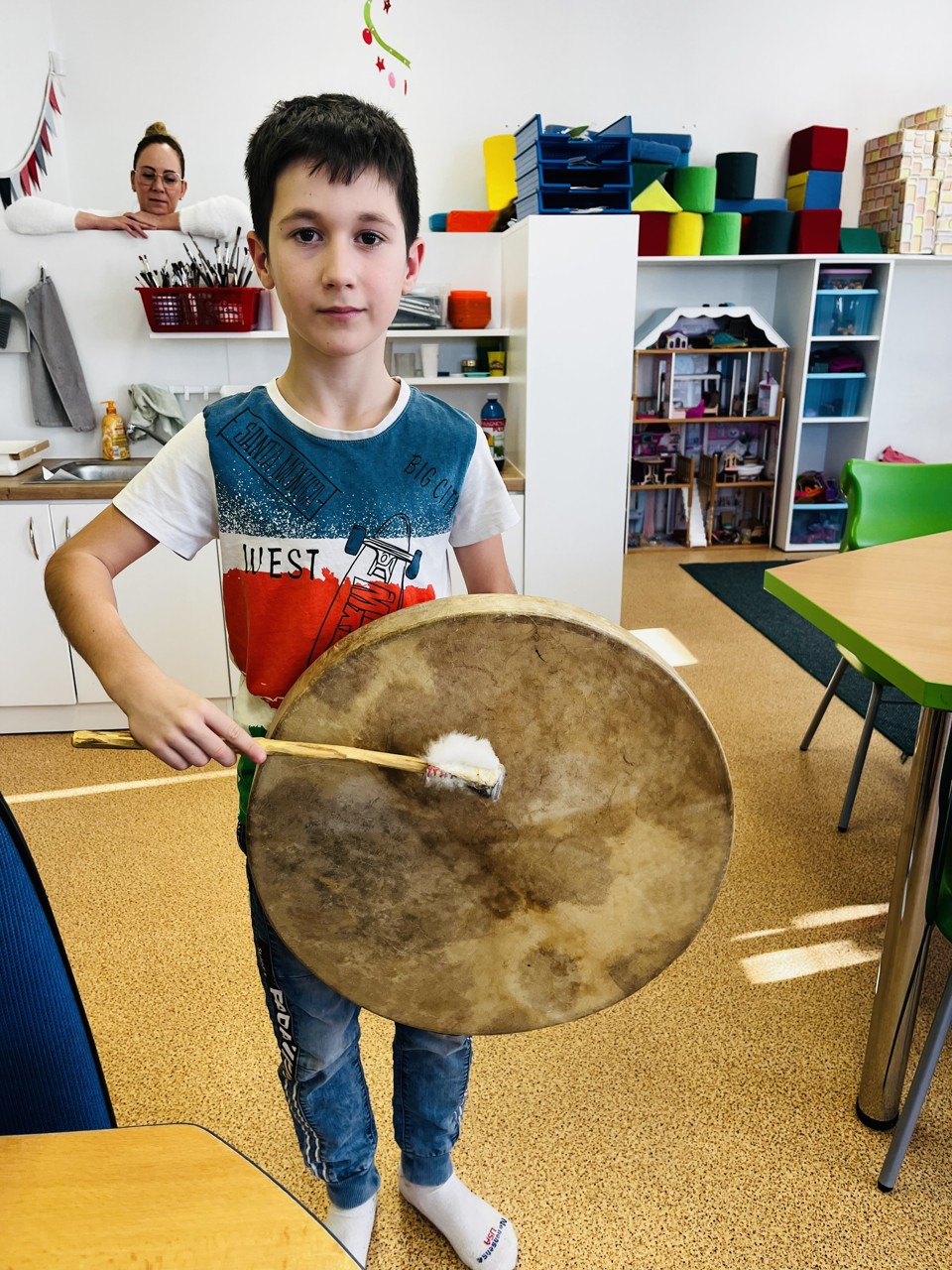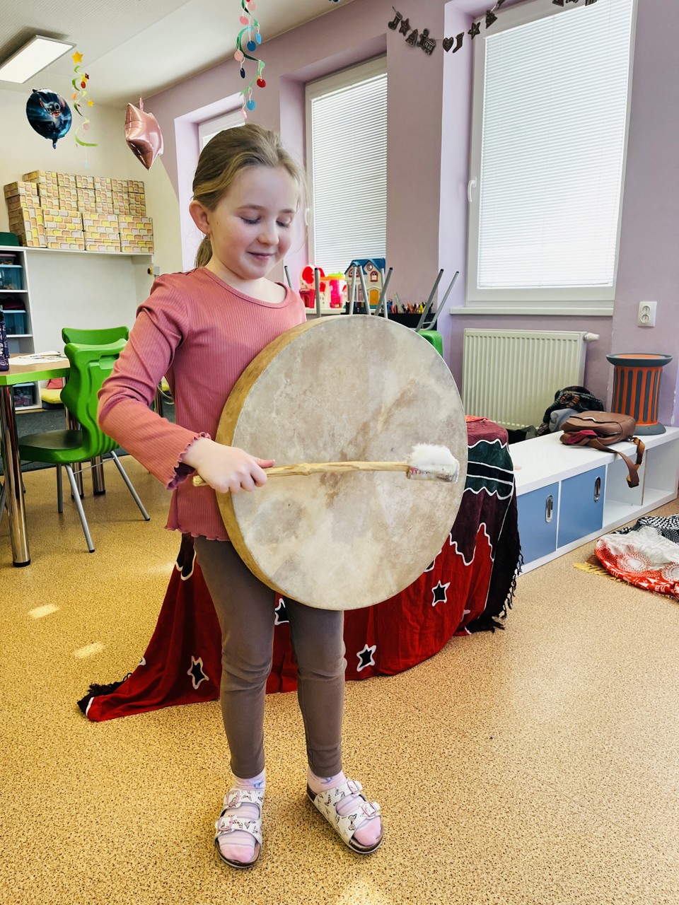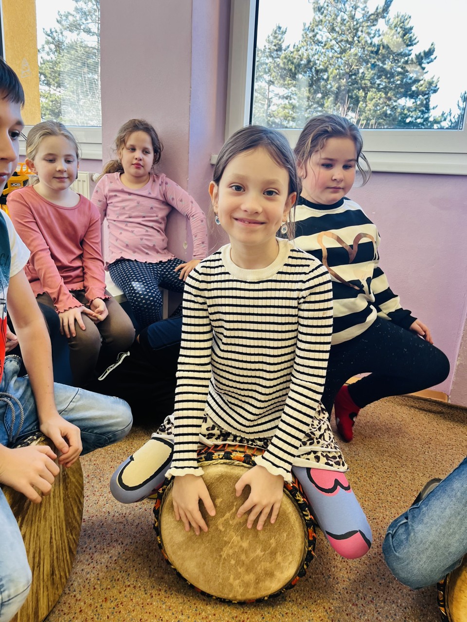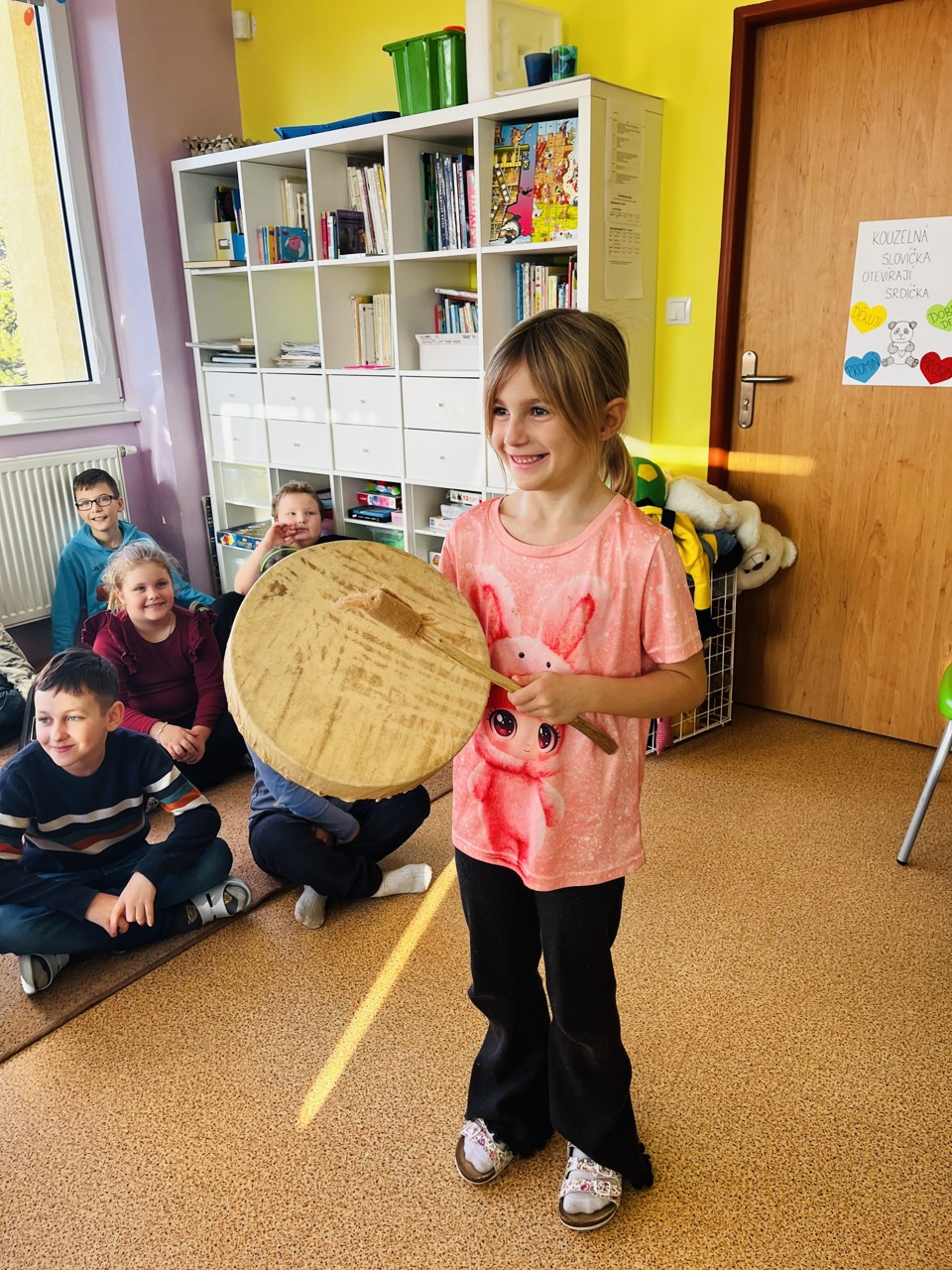 Dnes se mohli školáci seznámit s tím, jak funguje muzikoterapie. Tato technika pracuje se zvukem, rytmem, melodií a harmonií. Využívají se různé nástroje, často i ty, na které není nutné umět hrát, aby je mohl použít každý. Cílem této techniky je uvolnění, snížení stresu, zlepšení nálady, podpora paměti, ale i zlepšení mezilidských vztahů, podpora komunikace. Dnešní hodinka muzikoterapie zaujala všechny – malé, větší i ty nejstarší školáky.