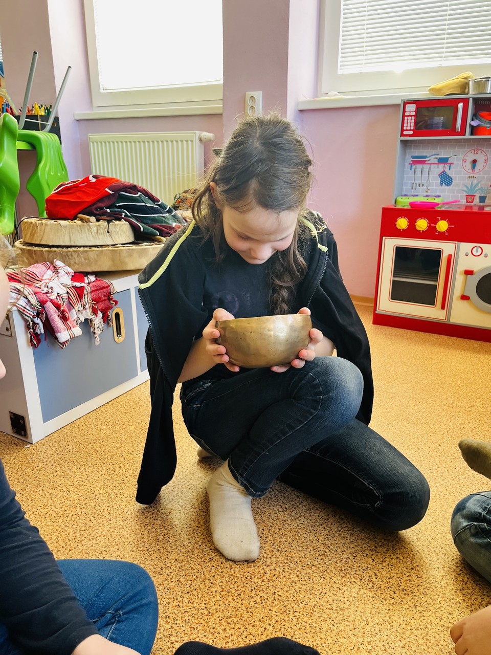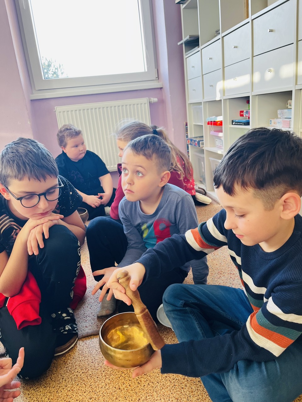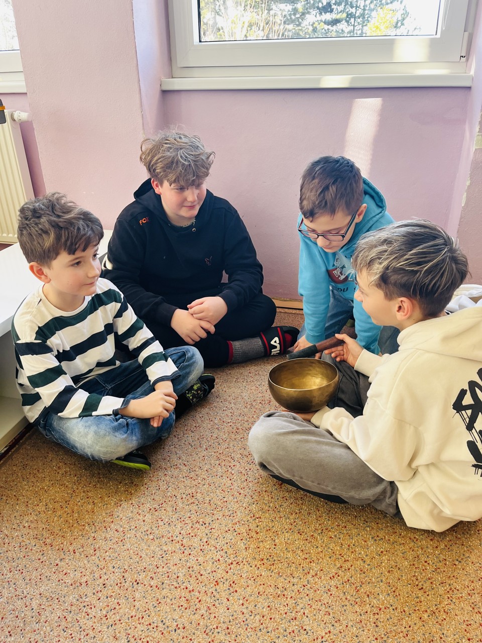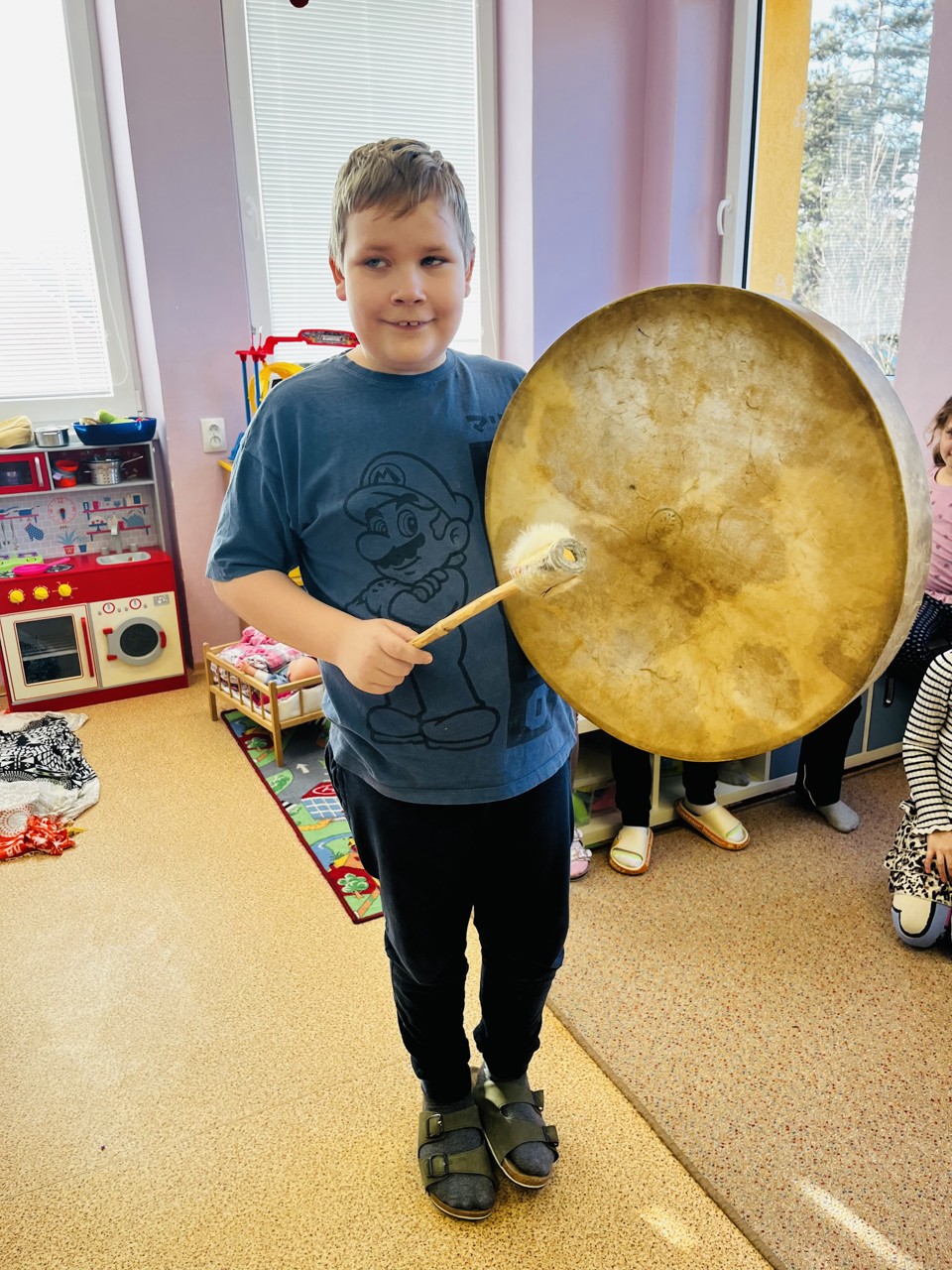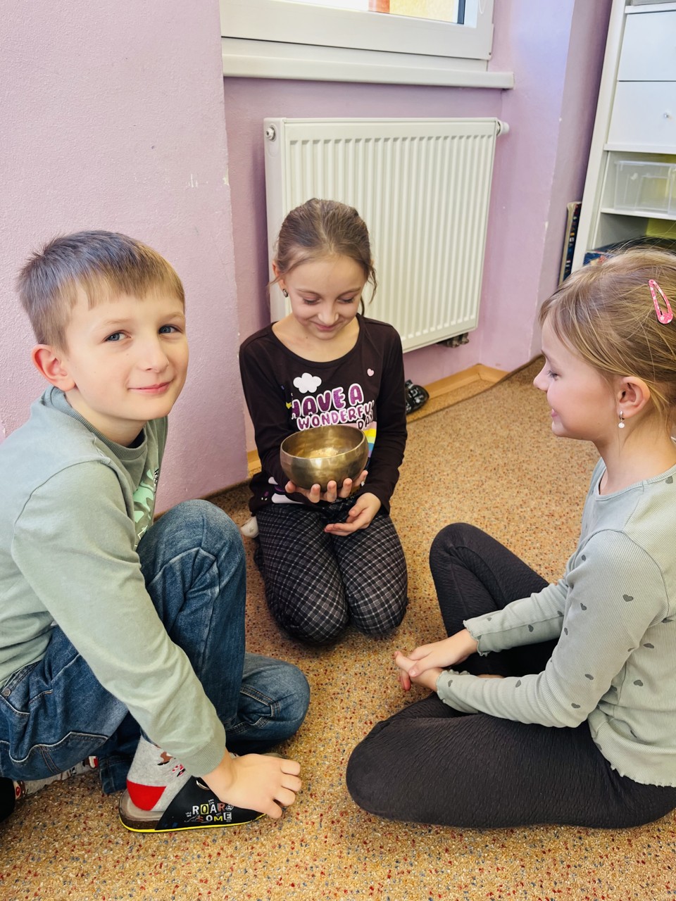Dnes se mohli školáci seznámit s tím, jak funguje muzikoterapie. Tato technika pracuje se zvukem, rytmem, melodií a harmonií. Využívají se různé nástroje, často i ty, na které není nutné umět hrát, aby je mohl použít každý. Cílem této techniky je uvolnění, snížení stresu, zlepšení nálady, podpora paměti, ale i zlepšení mezilidských vztahů, podpora komunikace. Dnešní hodinka muzikoterapie zaujala všechny – malé, větší i ty nejstarší školáky.