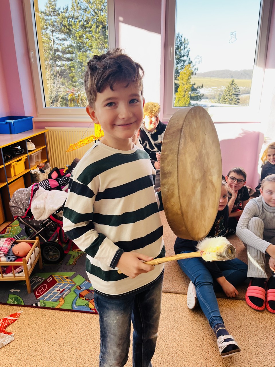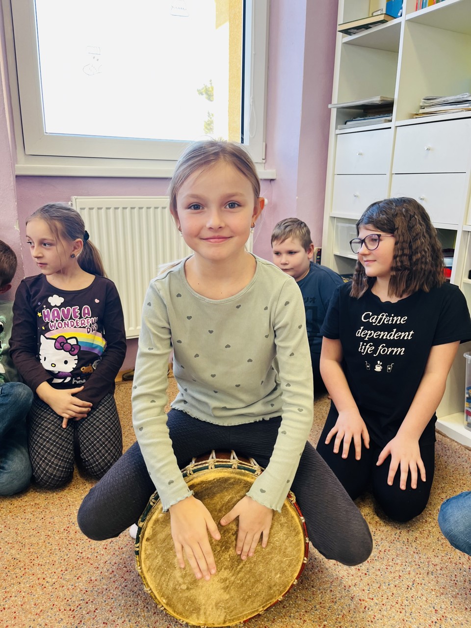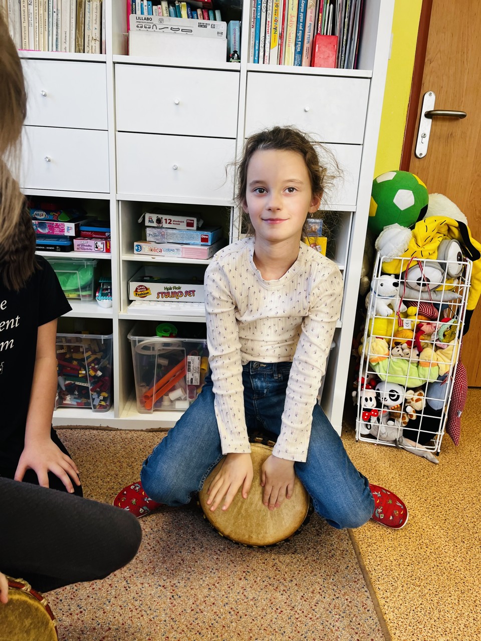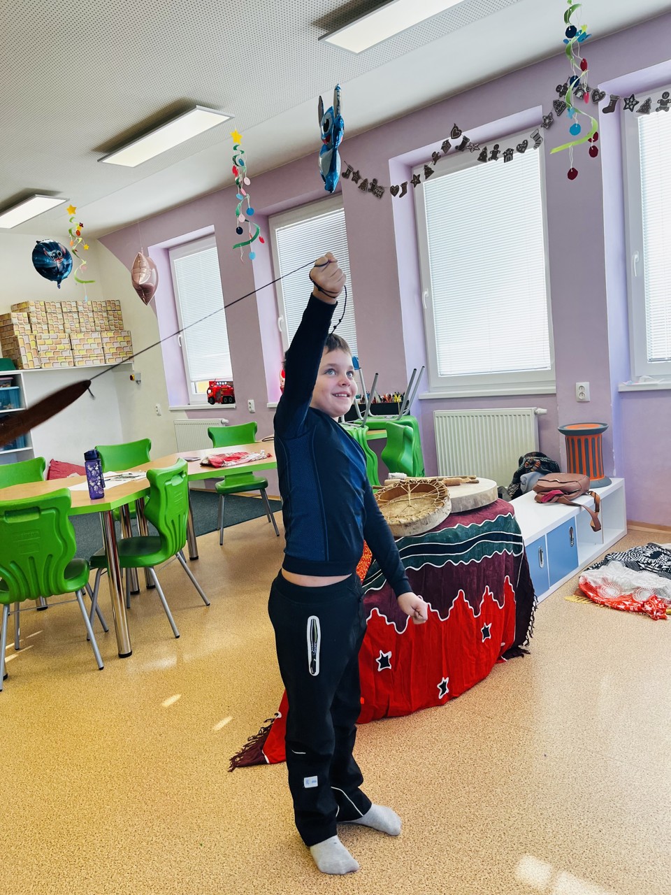 Dnes se mohli školáci seznámit s tím, jak funguje muzikoterapie. Tato technika pracuje se zvukem, rytmem, melodií a harmonií. Využívají se různé nástroje, často i ty, na které není nutné umět hrát, aby je mohl použít každý. Cílem této techniky je uvolnění, snížení stresu, zlepšení nálady, podpora paměti, ale i zlepšení mezilidských vztahů, podpora komunikace. Dnešní hodinka muzikoterapie zaujala všechny – malé, větší i ty nejstarší školáky.