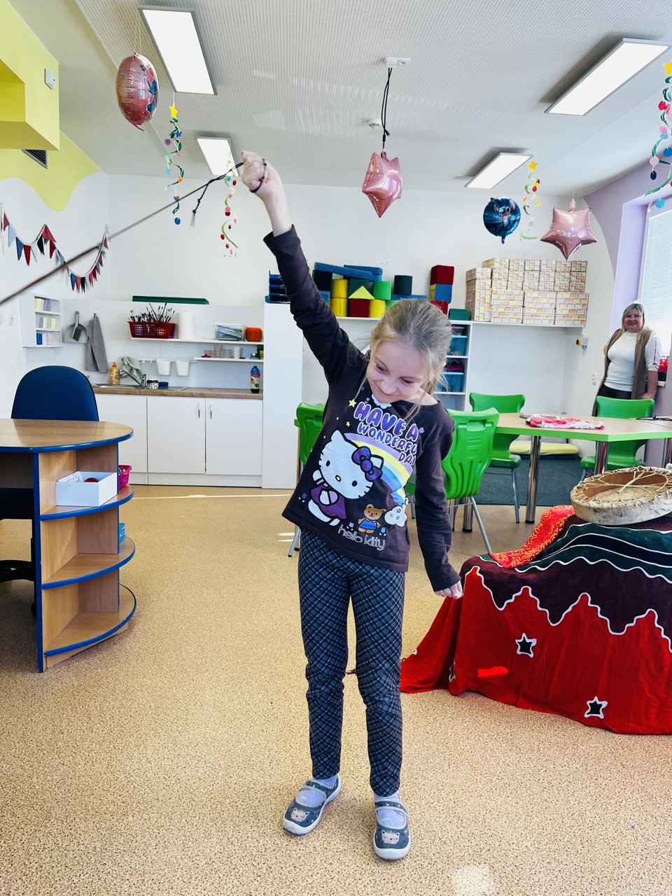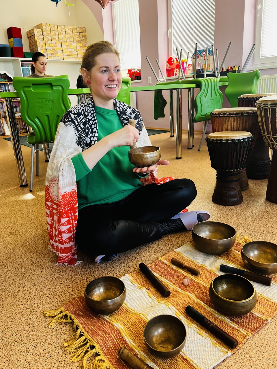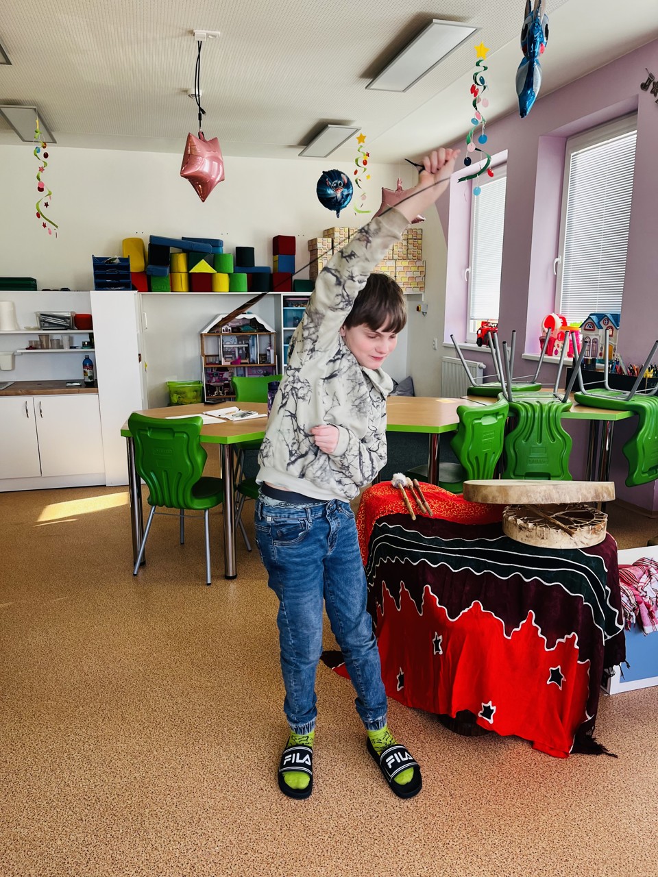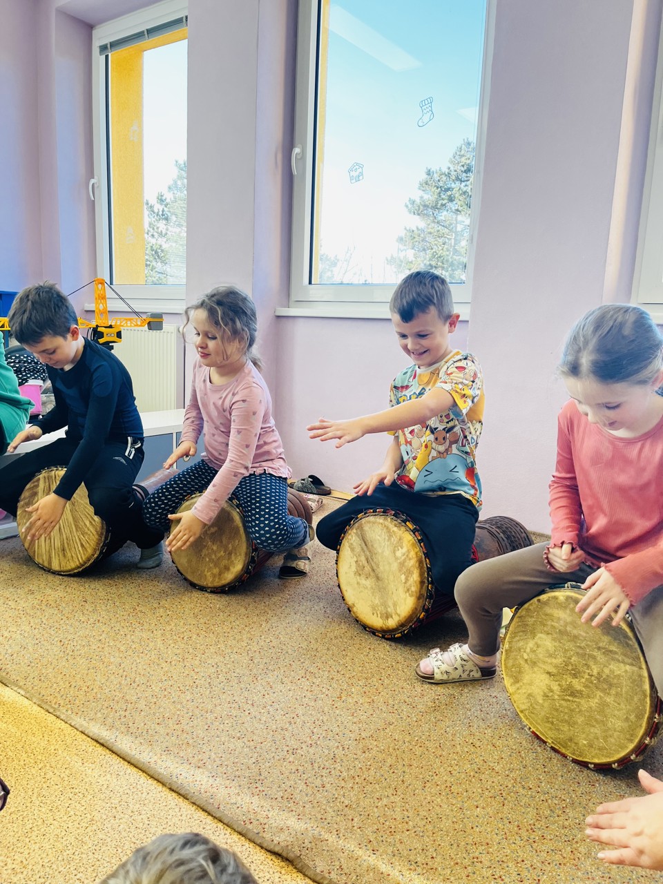 Dnes se mohli školáci seznámit s tím, jak funguje muzikoterapie. Tato technika pracuje se zvukem, rytmem, melodií a harmonií. Využívají se různé nástroje, často i ty, na které není nutné umět hrát, aby je mohl použít každý. Cílem této techniky je uvolnění, snížení stresu, zlepšení nálady, podpora paměti, ale i zlepšení mezilidských vztahů, podpora komunikace. Dnešní hodinka muzikoterapie zaujala všechny – malé, větší i ty nejstarší školáky.