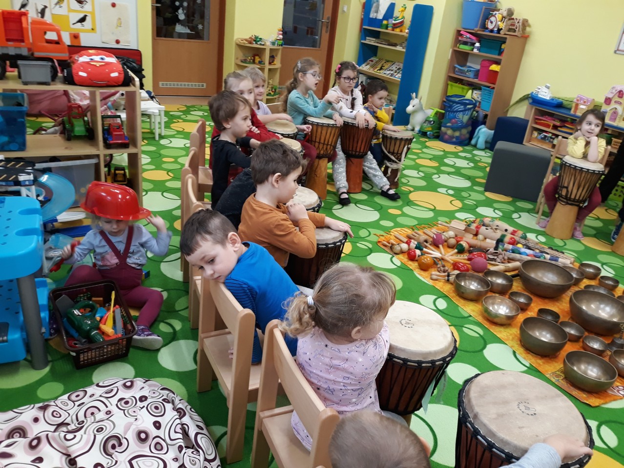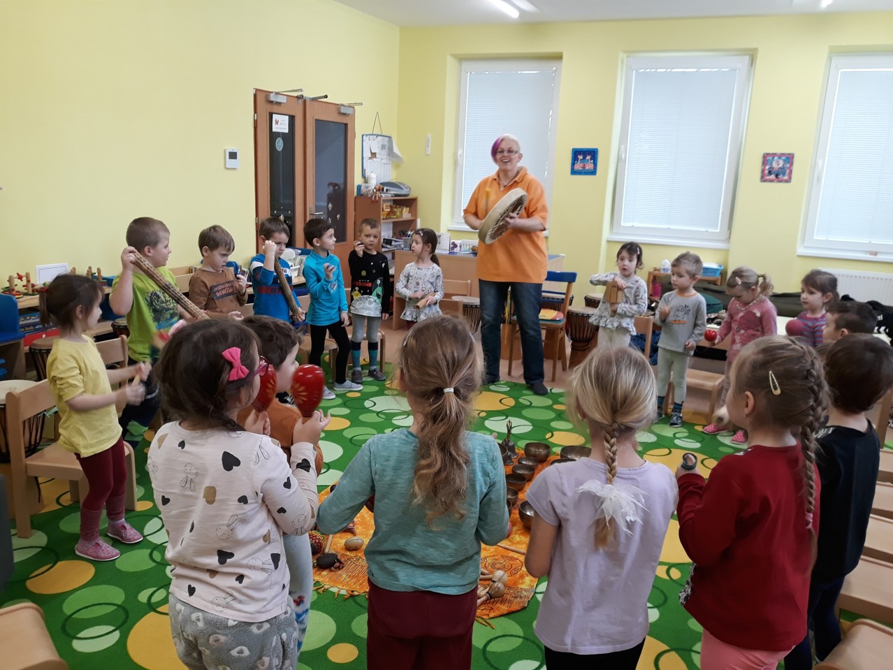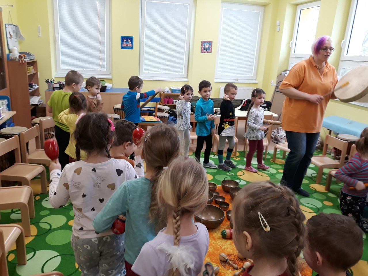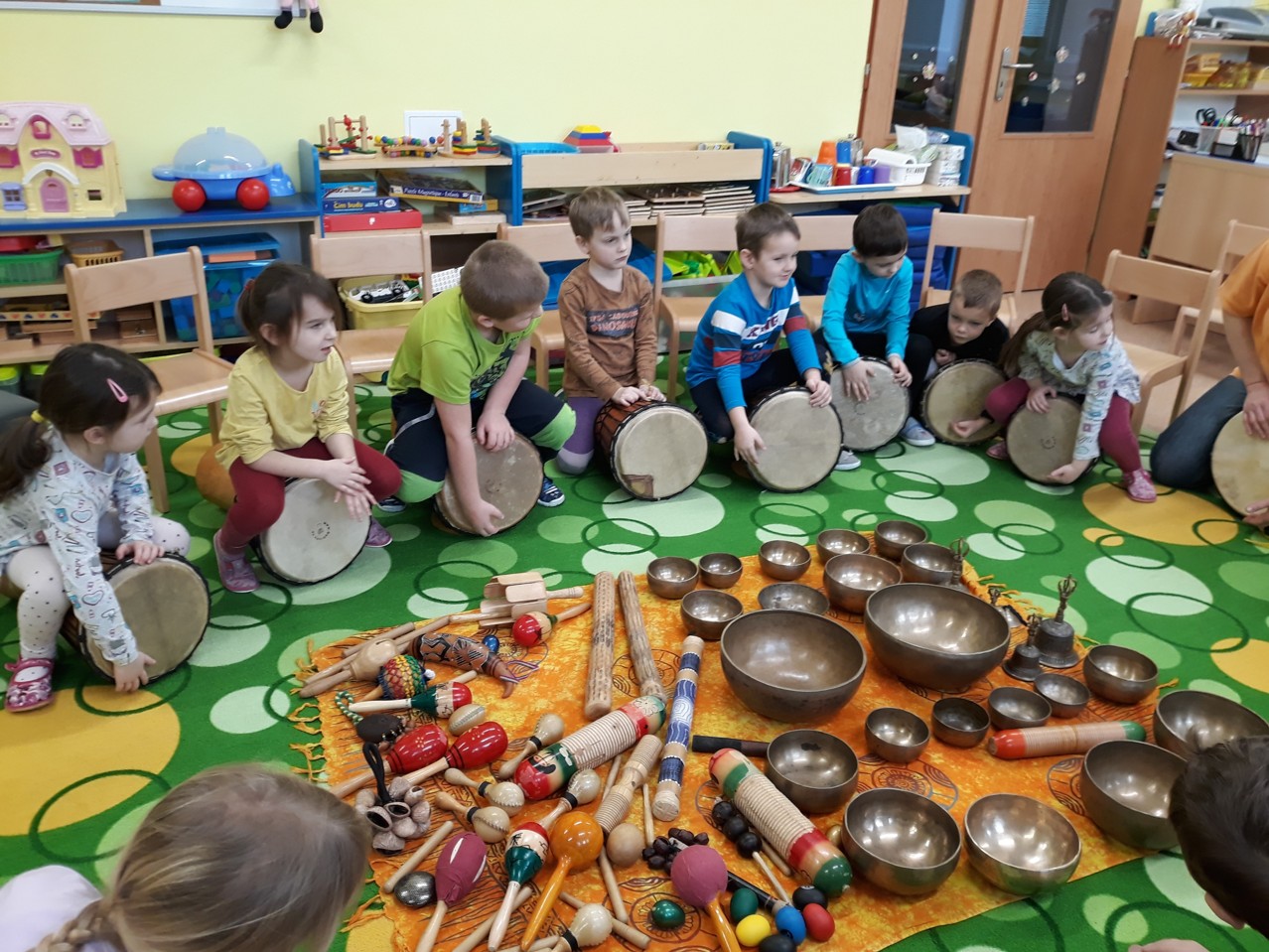Je velmi důležité, abychom už u dětí povzbuzovali jejich zájem o hudbu. V pondělí 27.1.2020 jsme měli tu možnost poznat hudbu z jiné stránky – v podobě MUZIKOTERAPIE. Navštívila nás paní lektorka Miroslava Veselá. Děti si vyzkoušely africké bubny a mnoho dalších zajímavých a nevšedních nástrojů. Společně jsme si také zazpívali a zatancovali. Všichni si to užili. Byl to úžasný a intenzivní zážitek pro všechny.