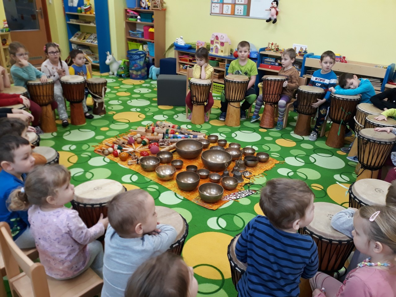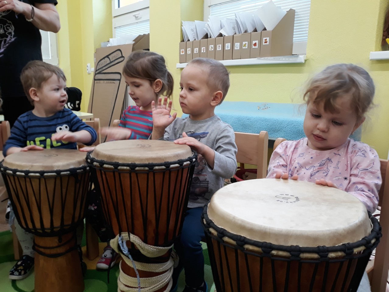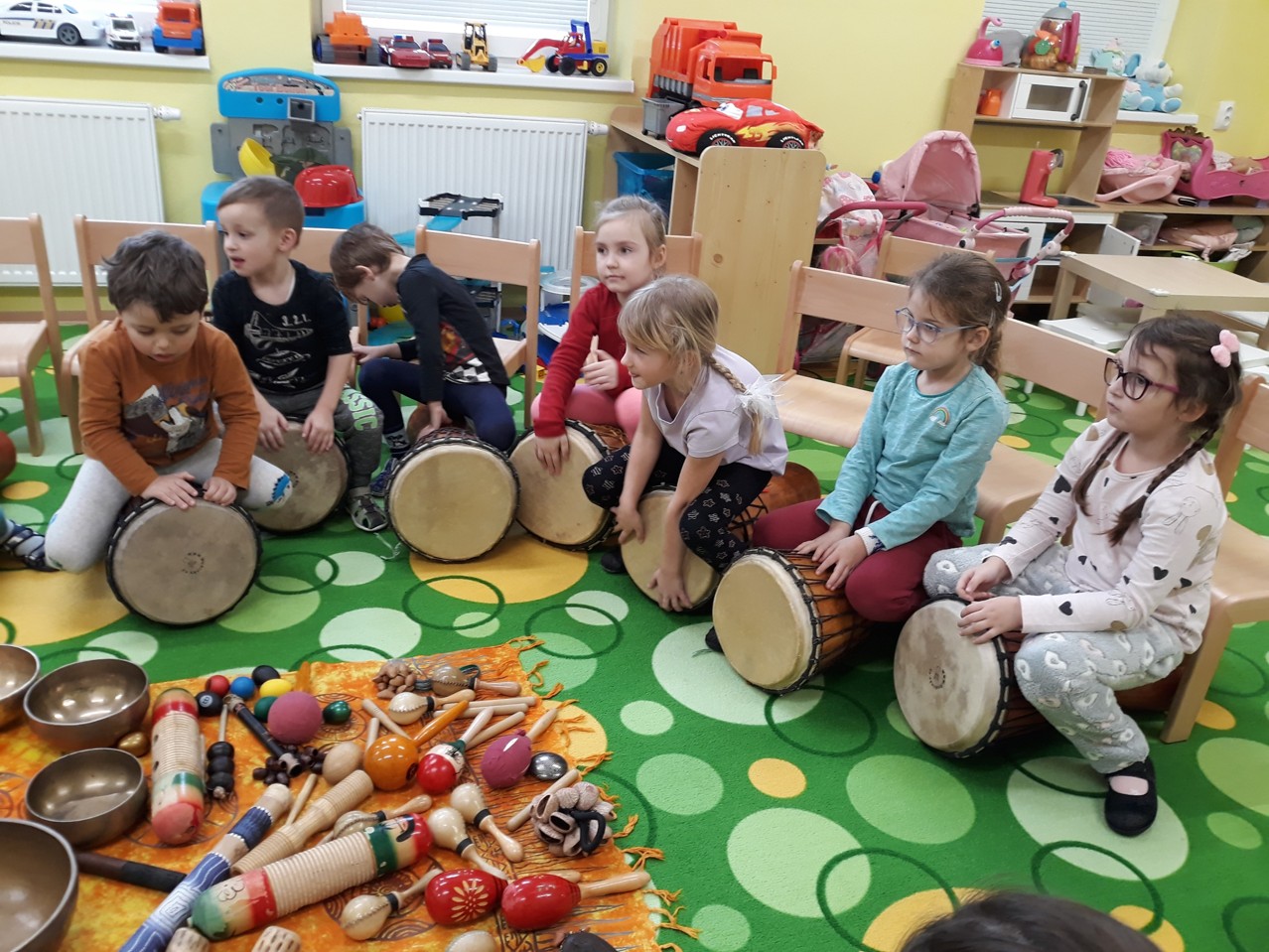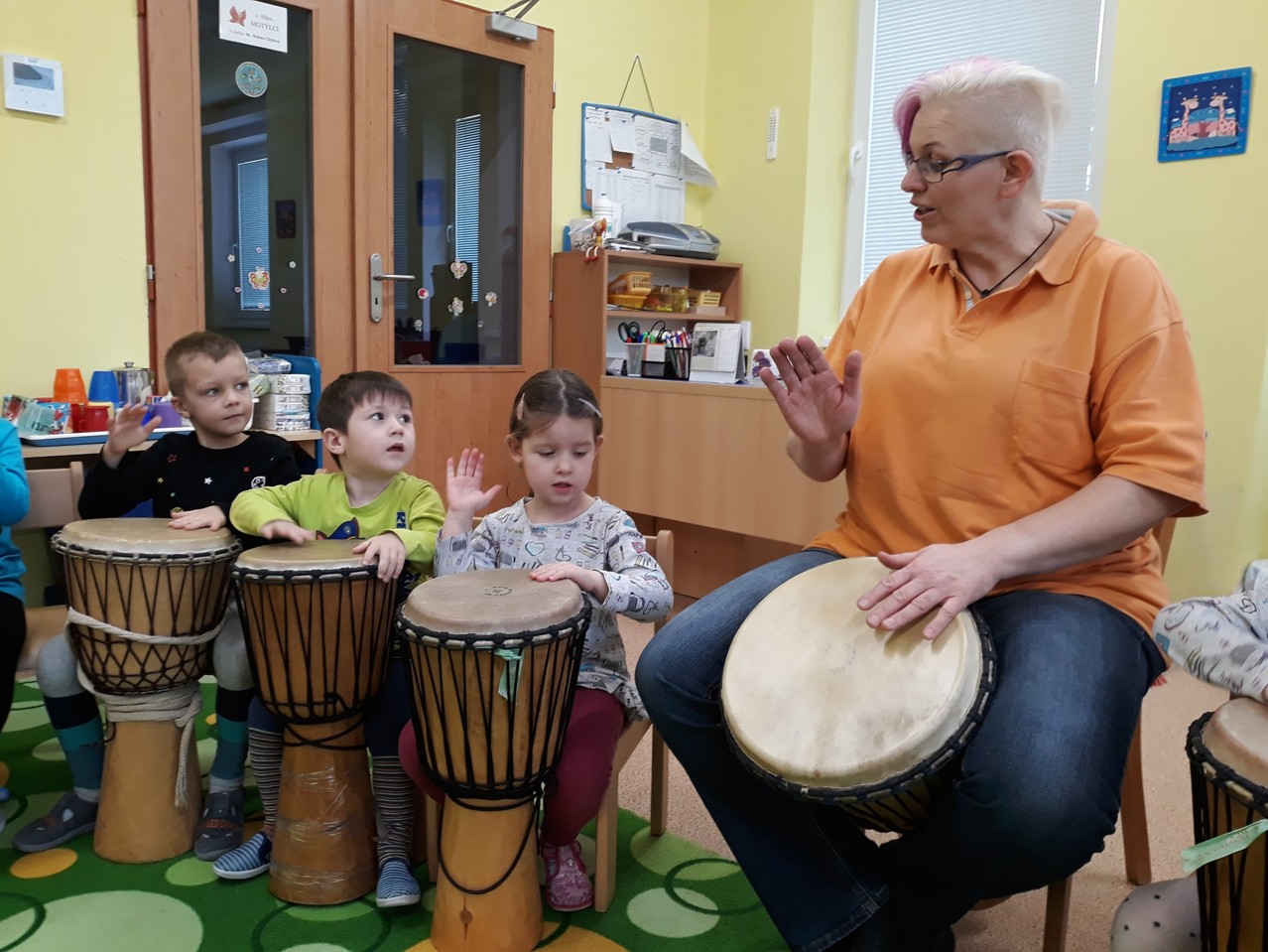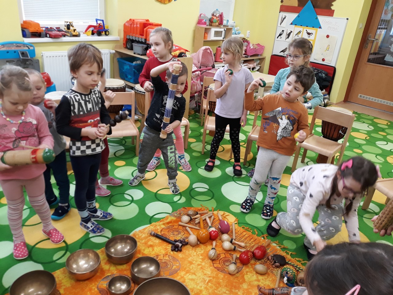 Je velmi důležité, abychom už u dětí povzbuzovali jejich zájem o hudbu. V pondělí 27.1.2020 jsme měli tu možnost poznat hudbu z jiné stránky – v podobě MUZIKOTERAPIE. Navštívila nás paní lektorka Miroslava Veselá. Děti si vyzkoušely africké bubny a mnoho dalších zajímavých a nevšedních nástrojů. Společně jsme si také zazpívali a zatancovali. Všichni si to užili. Byl to úžasný a intenzivní zážitek pro všechny.
