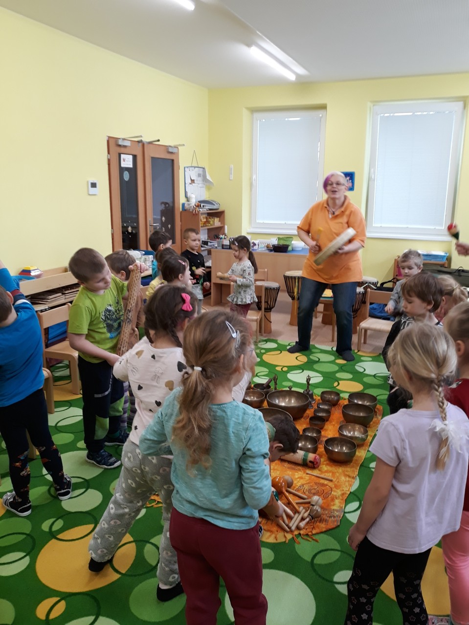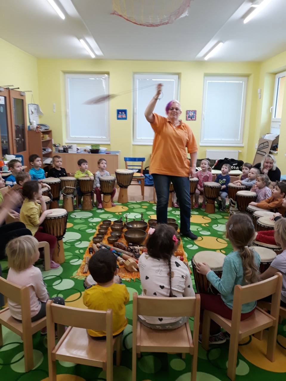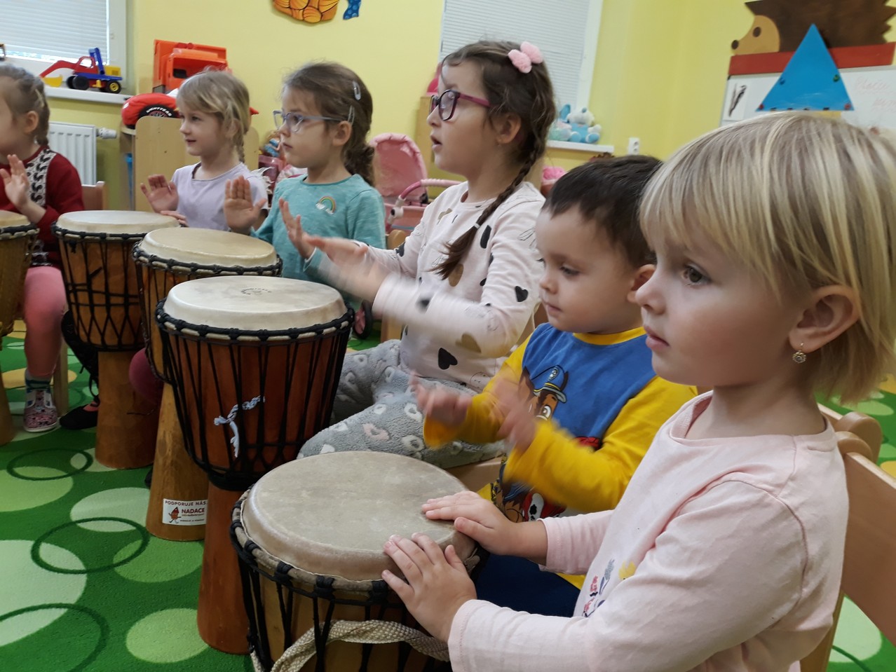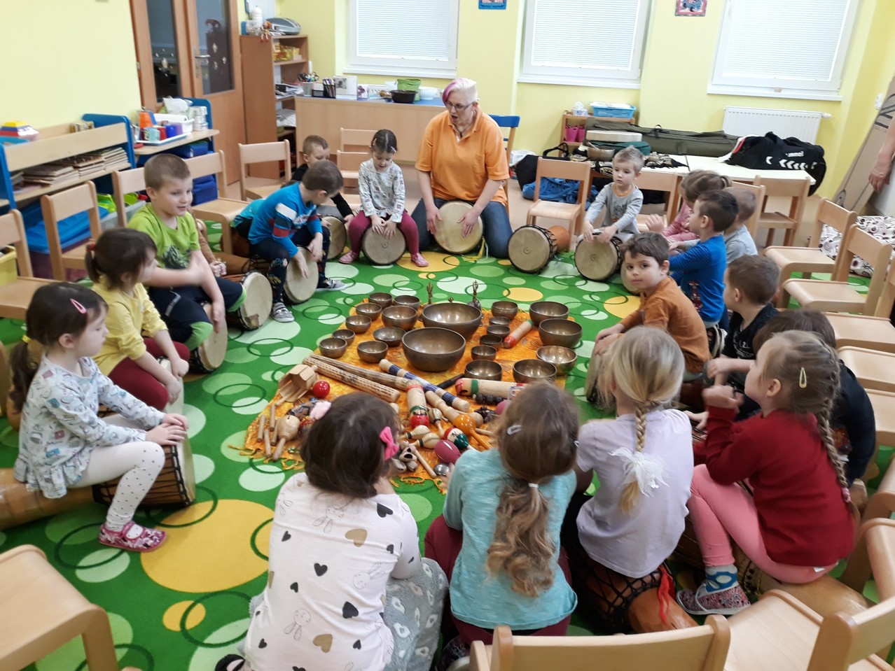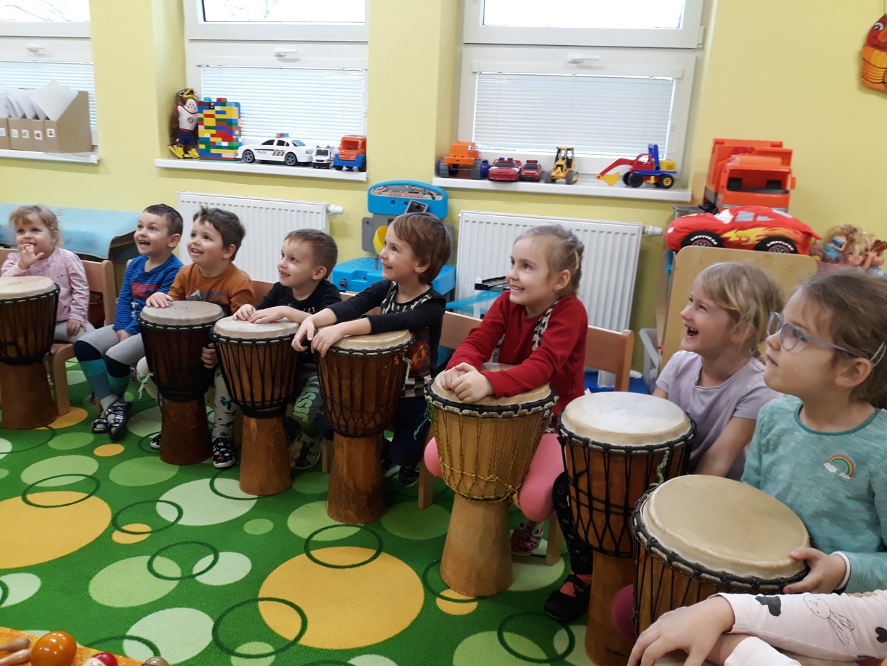 Je velmi důležité, abychom už u dětí povzbuzovali jejich zájem o hudbu. V pondělí 27.1.2020 jsme měli tu možnost poznat hudbu z jiné stránky – v podobě MUZIKOTERAPIE. Navštívila nás paní lektorka Miroslava Veselá. Děti si vyzkoušely africké bubny a mnoho dalších zajímavých a nevšedních nástrojů. Společně jsme si také zazpívali a zatancovali. Všichni si to užili. Byl to úžasný a intenzivní zážitek pro všechny.