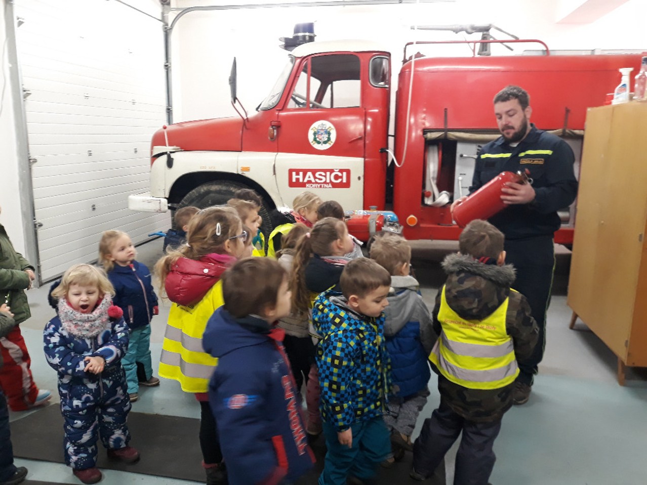 V úterý 7. 1. 2020 jsme s dětmi navštívili místí hasičskou zbrojnici. Ujal se nás vedoucí družstva SDH Korytná pan Jakub Vacula a pan Radek Mančál. Děti se dozvěděly, co všechno hasiči dělají a jak se mají správně chovat v případě požáru či jiného nebezpečí. Hasiči nám předvedli celé své hasičské vybavení, oblečení, boty, helmy a hasičská auta. Vše si mohly děti osahat a vyzkoušet.