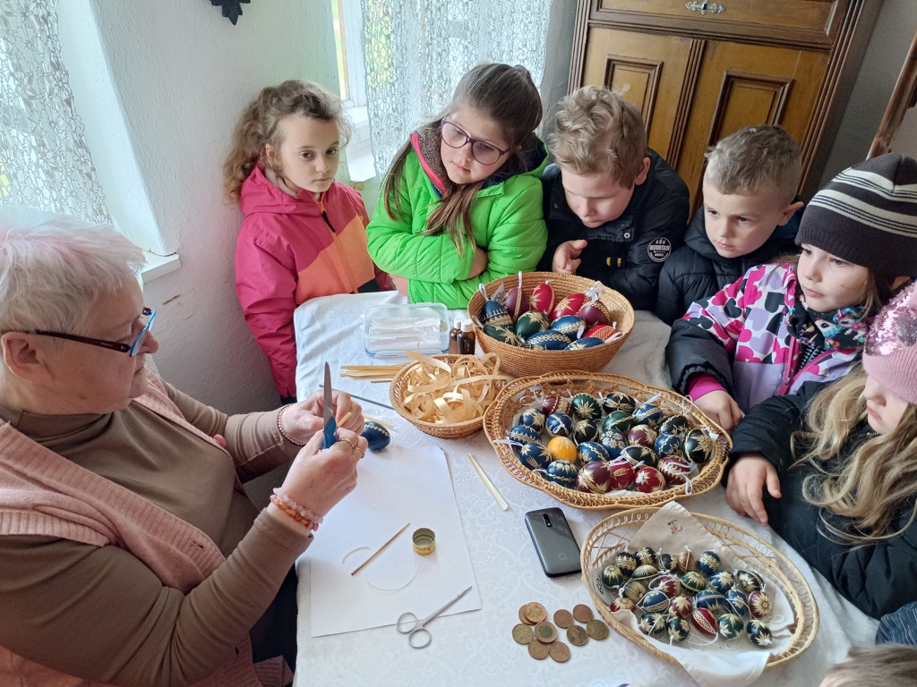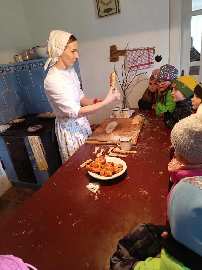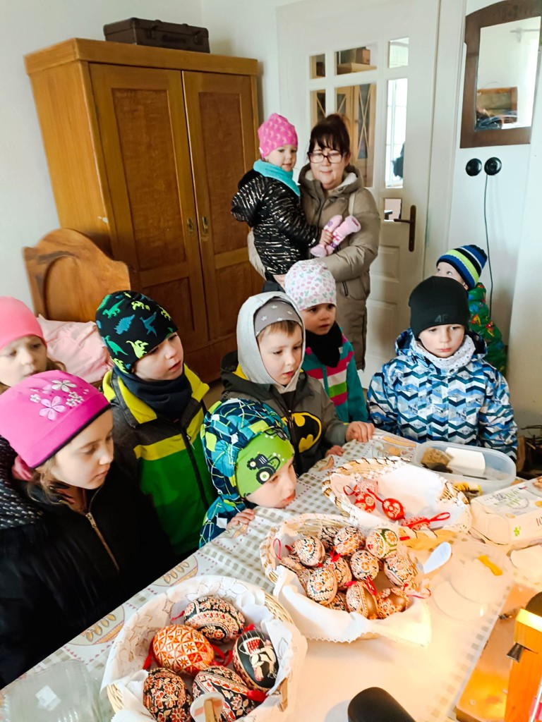 Viděli jsme zdobení kraslic, technika zdobení - voskem a slámou, kterou nám předvedly malérečky. Nakonec jsme si mohli vyzkoušet, jak se z těsta tvarují a upečou velikonoční jidášky, které jsme i ochutnali.