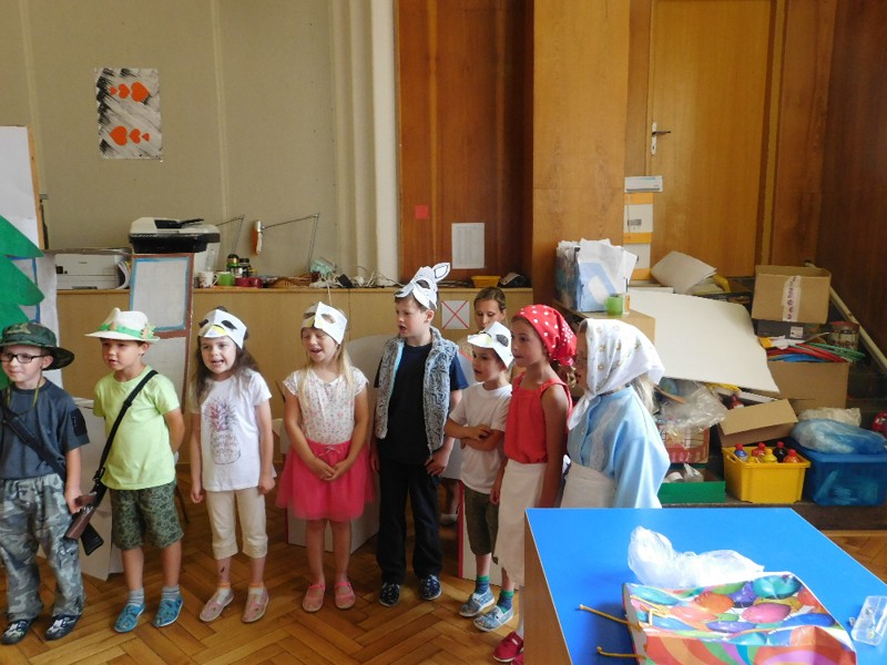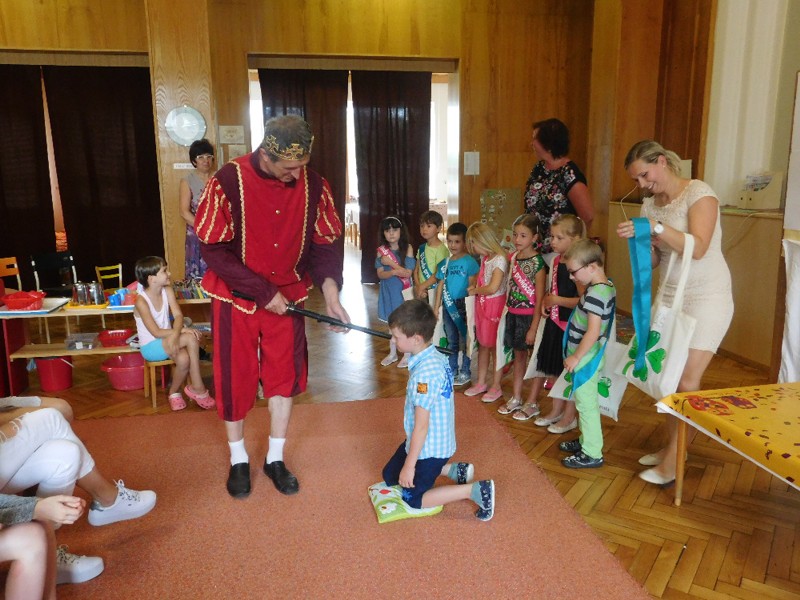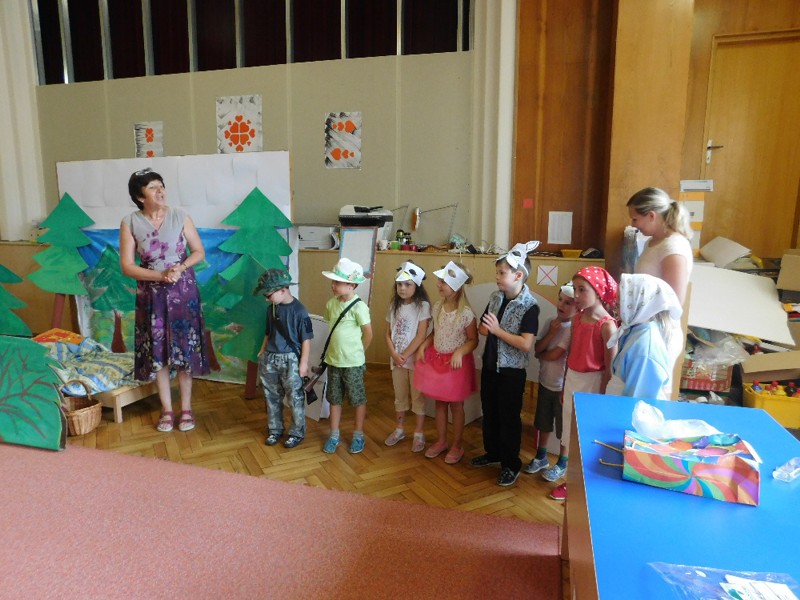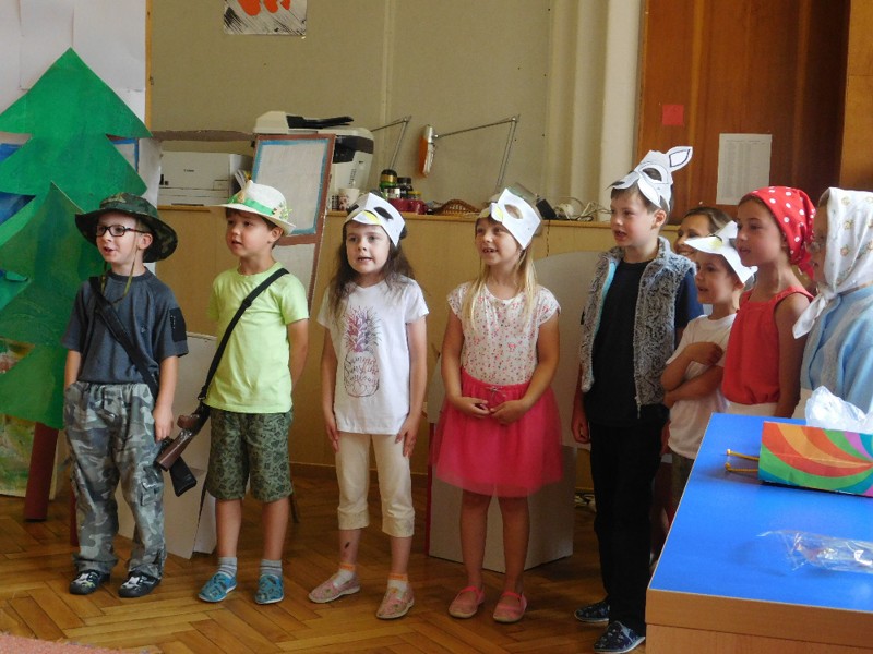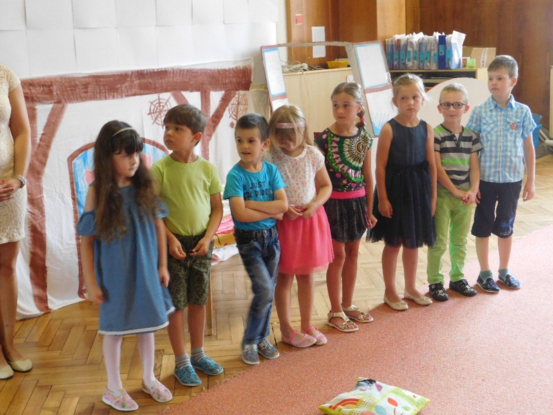 Naše nejstarší děti si pro své rodiny a ostatní blízké připravily malé vystoupení ve formě básně, písně a dramatizaci zpívané pohádky Červená karkulka od Zdeňka Svěráka a Jaroslava Uhlíře. Dětem se představení moc povedlo, o čem svědčily ovace od publika. Přítomen byl i pan starosta obce Korytná, který děti pasoval na školáky v doprovodu paní ředitelky ZŠ a MŠ paní Ing. Petry Píškové, která dětem popřála hodně zdaru do jejich nové etapy života, která je čeká.Děti od mateřské školy dostaly šerpy a odnesly si krásné dárečky na rozloučenou v taškách, které si samy vyzdobily. Následovalo předávání dárečků a poděkování paní učitelkám, které tímto rodičům děkují. Následoval raut a pohoštění, pro všechny přítomné,které si rodiče našich předškoláků připravili.