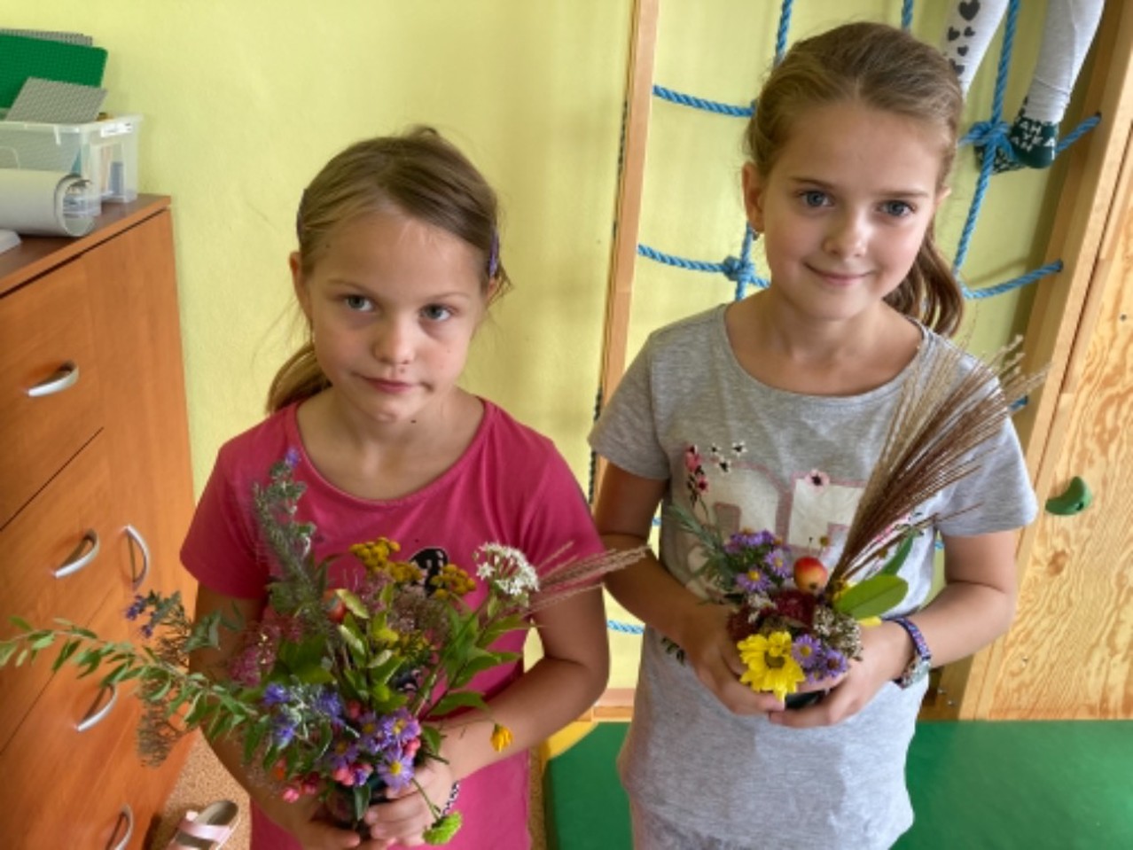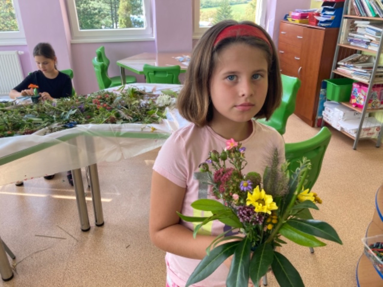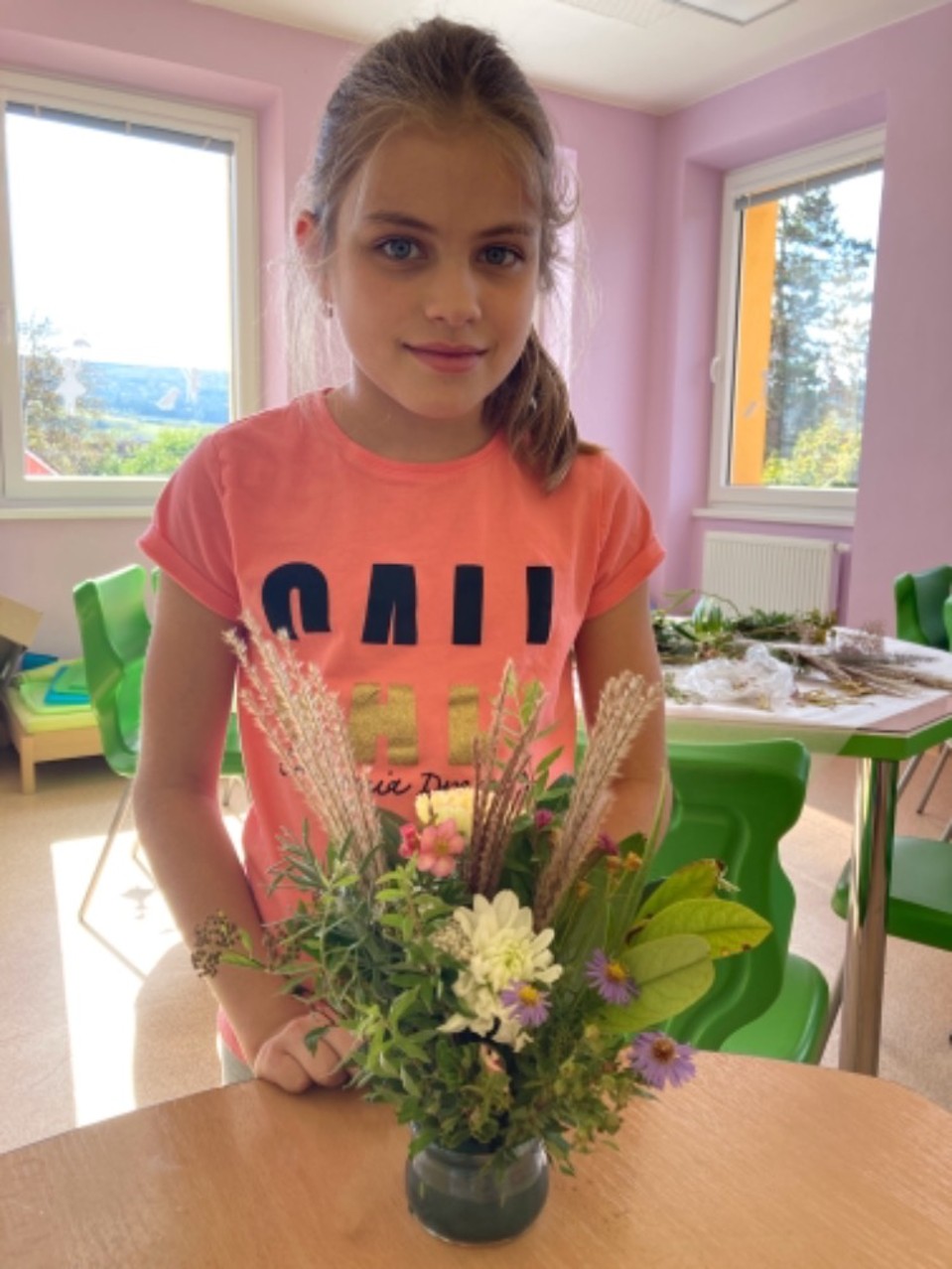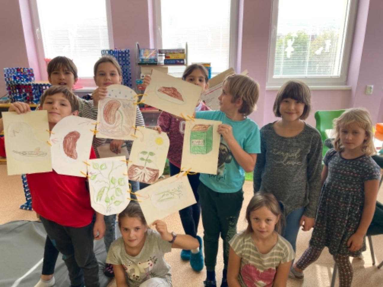 I když nám podzimní družinové tvoření zkrátil nouzový stav, tak jsme nezaháleli. Hodně času jsme trávili venku na zahradě, hřišti, ale i při výpravách k potoku či na louku. Největší úspěch mělo odpoledne s trasou podle fáborků a hledáním lístečků s úkoly. Zasadili jsme bylinky jako pomoc EKOŠKOLCE. Vyrobili jsme podzimní věnec, sovičky, záložky, leporelo o koloběhu růstu fazolky (které jsme věnovali školce) atd. Během květinového dne jsme si naaranžovali nádherné vypichované dekorace. Taky nesmíme zapomenout na tematický týden “čaj”, kdy jsme si každý den uvařili jiný druh čaje (máta, ginko, černý,…) a vyrobili jsme čajový 3D obrázek.