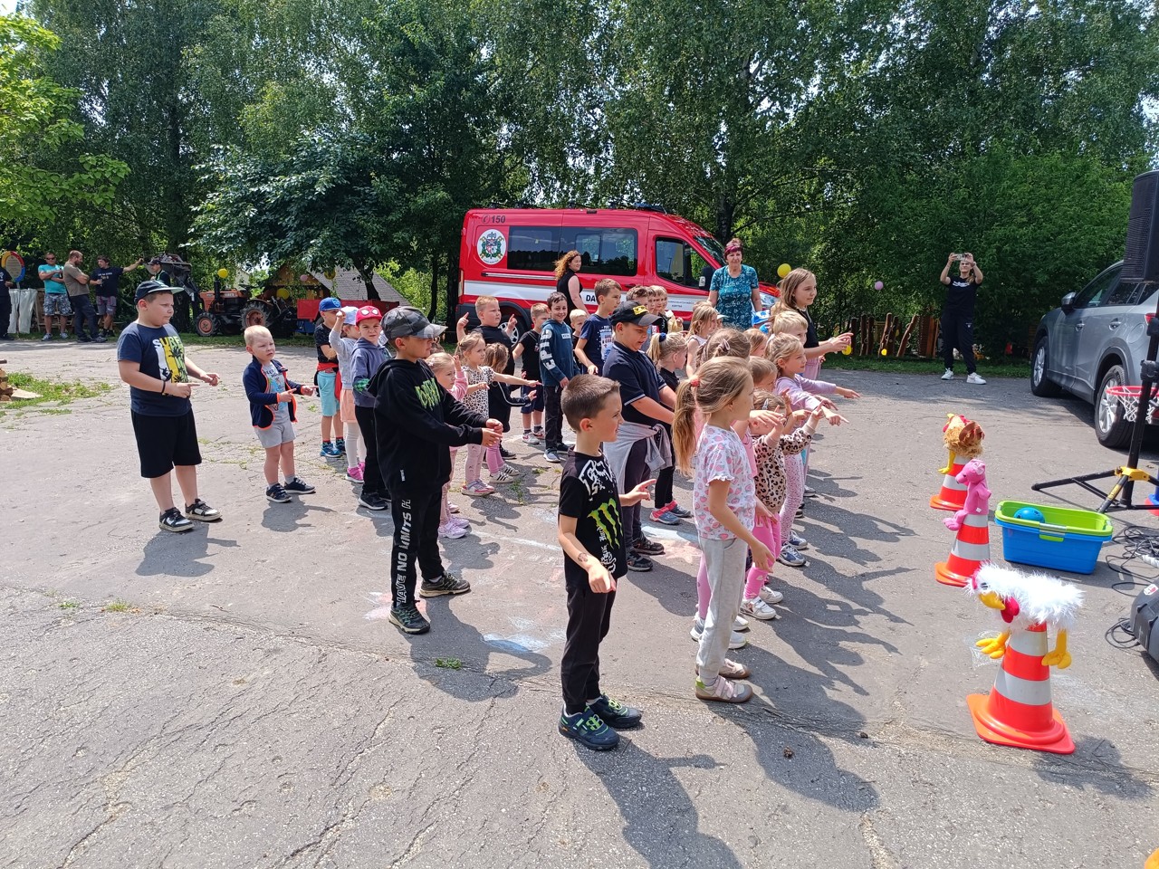 Velké poděkování patří všem rodičům, kteří se zapojili do přípravy občerstvení pro děti, pomohli s organizací a přispěli k pohodové atmosféře. Tatínkové nachystali ohniště a postarali se o bezpečné opékání špekáčků. Zvláštní poděkování si zaslouží také místní hasiči, kteří pro děti připravili ukázku hasičského vozu.