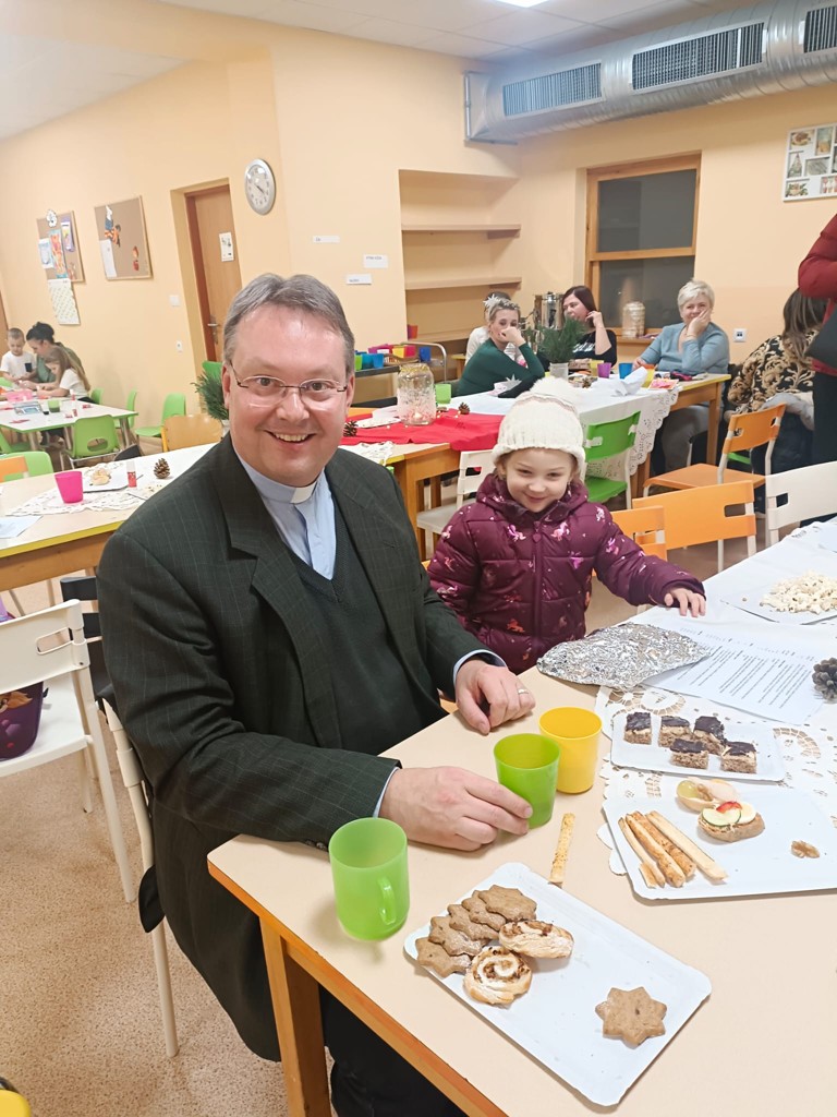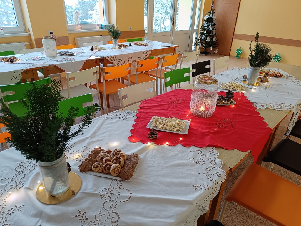 Ve čtvrtek proběhlo v naší školce sváteční posezení s tvořením. Pozvaní byli nejen rodiče, prarodiče, ale i pan farář, starosta obce a paní ředitelka. Děti všechny přivítaly básničkami a zpěvem vánočních koled. Na stolech si mohl každý nabídnout malé pohoštění, ochutnat bylinkový čaj, punč a poté si vyrobit společně s dětmi vánoční přáníčko nebo namalovat sádrové odlitky. Věříme, že všichni odcházeli příjemně naladění vánoční atmosférou a těšíme se na další společné setkání.