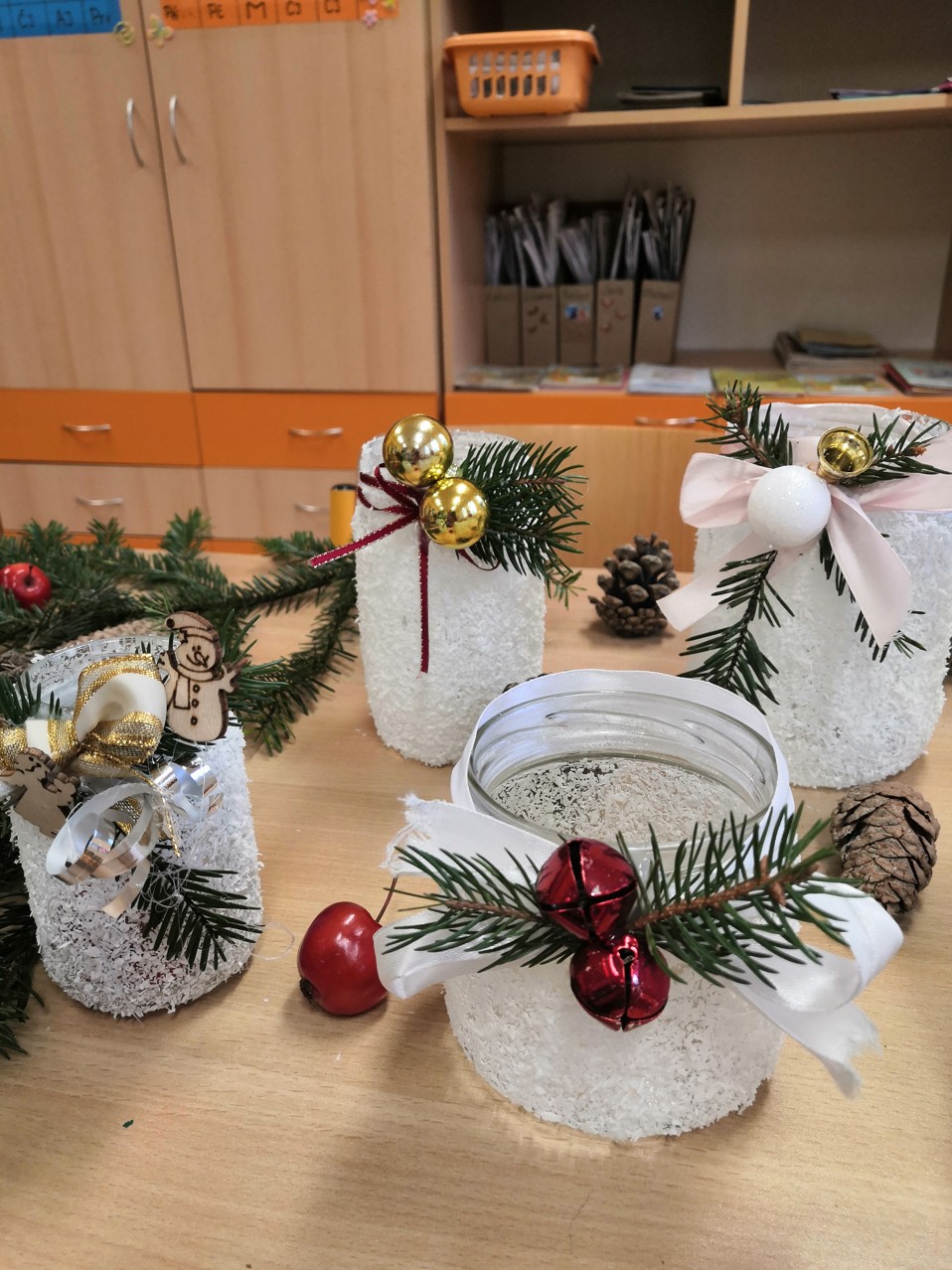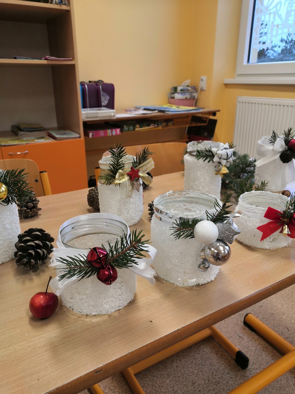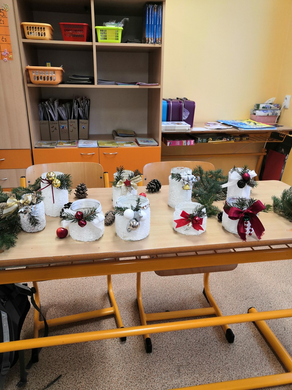 I naši malí školáci se zapojují do výroby vánočních dekorací. V pracovních činnostech dnes vyráběly krásné vánoční svícny. V prosincových dnech, když se opravdu brzy stmívá, najdou doma určitě i praktické využití.