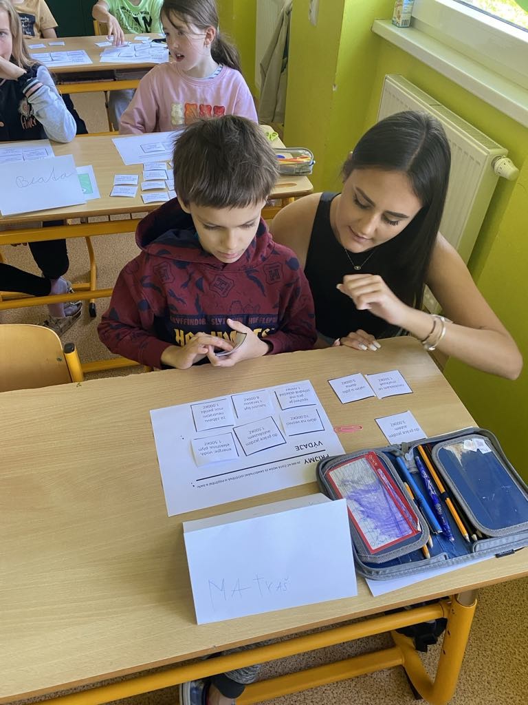 Dnešní dopoledne nás navštívily studentky VŠ ekonomické. Pro 3. až 5. ročník si připravily projekt na téma ,,Finanční gramotnost“, která vede žáky, aby se již od raného věku naučili hospodařit s penězi. Děti si osvojovaly pojmy příjem, výdaj, povinné výdaje, nepovinné výdaje, nutné výdaje…Učily se, jak rozložit výdaje, aby se vešly do určitého příjmu nebo kam si spořit peníze. Děti projekt natolik zaujal, že si přejí jeho pokračování.