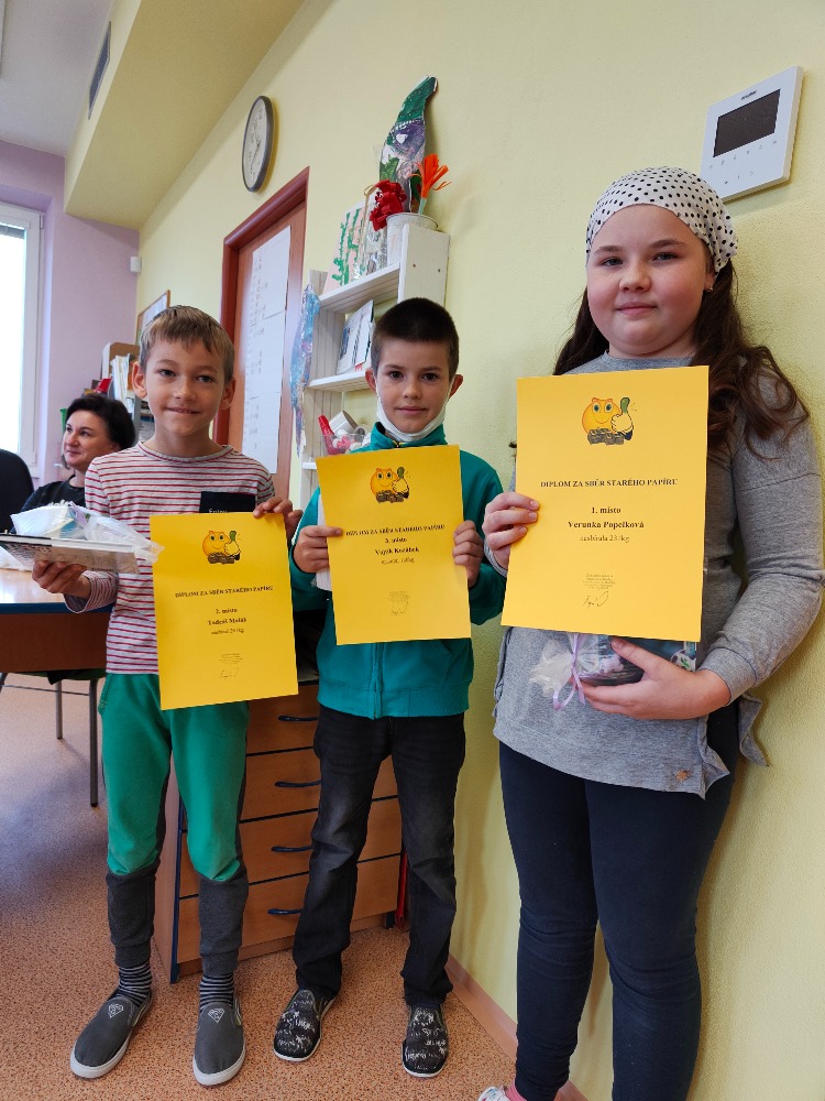 Stejně jako v předešlých letech jsme i letos uspořádali podzimní soutěž ve sběru starého papíru. Do sběru se zapojilo celkem 31 dětí a přivezly celkem 1127 kg vytříděného starého papíru. Všichni zúčastnění dostali za odměnu drobné dárky. Děti. které se umístily na prvních třech místech obdržely dárečky hodnotnější. Ale ten hlavní dárek na děti ještě čeká. Za utržené peníze pojedou na jaře na výlet.