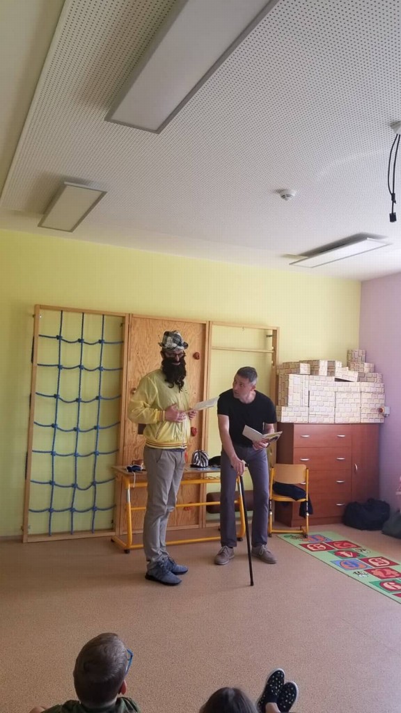 V úterý 31.5. 2022 do naší školy zavítala skupina herců scénického čtení, kteří dětem na příbězích Miloše Macourka názorně ukázali, jak se dá se čteným textem pracovat. Představení bylo zinscenováno velmi zábavnou formou, kdy i děti byly vtahovány do děje. Samy fotky napoví, jak se dětem představení moc líbilo.