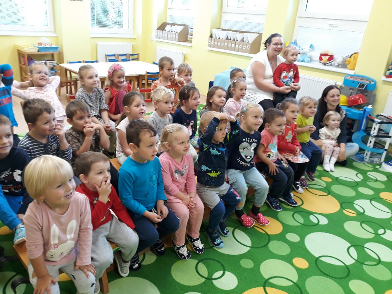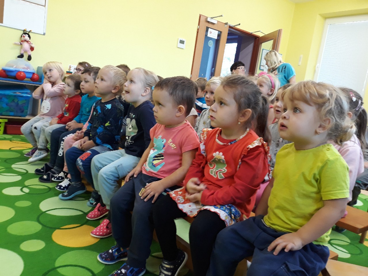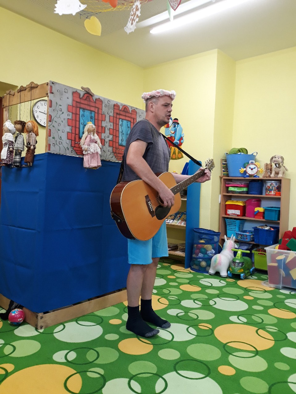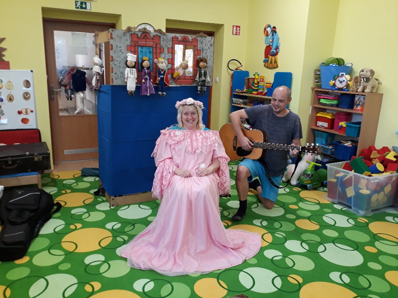 Ve čtvrtek 3. října mezi nás opět zavítal pan Taraba se svou kytarou a loutkami. Z jeho pohádky „O Šípkové Růžence“ byly děti nadšené! I ti nejmenší sledovali s napětím děj a živě reagovaly. Díky citlivému vnímání dětských projevů pan Taraba střídal průběh pohádkového děje s tanečky při kytaře, při kterých se děti mohly na chvilku uvolnit a rozhýbat. Jsme rádi, že mezi nás přišly i maminky se svými dětmi z adaptačního klubu Mrňata.