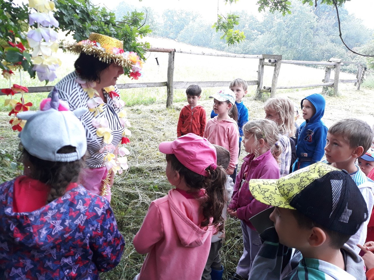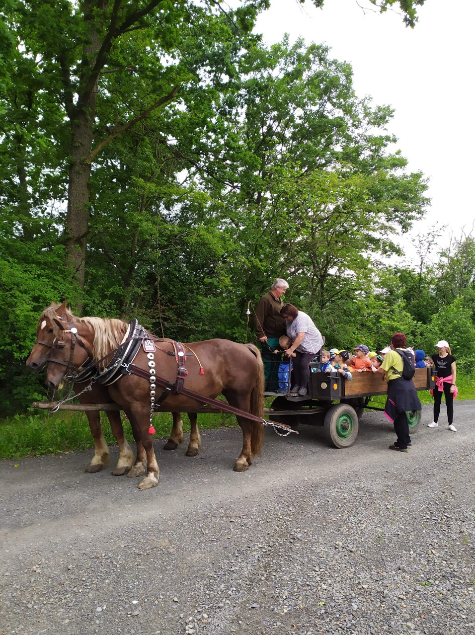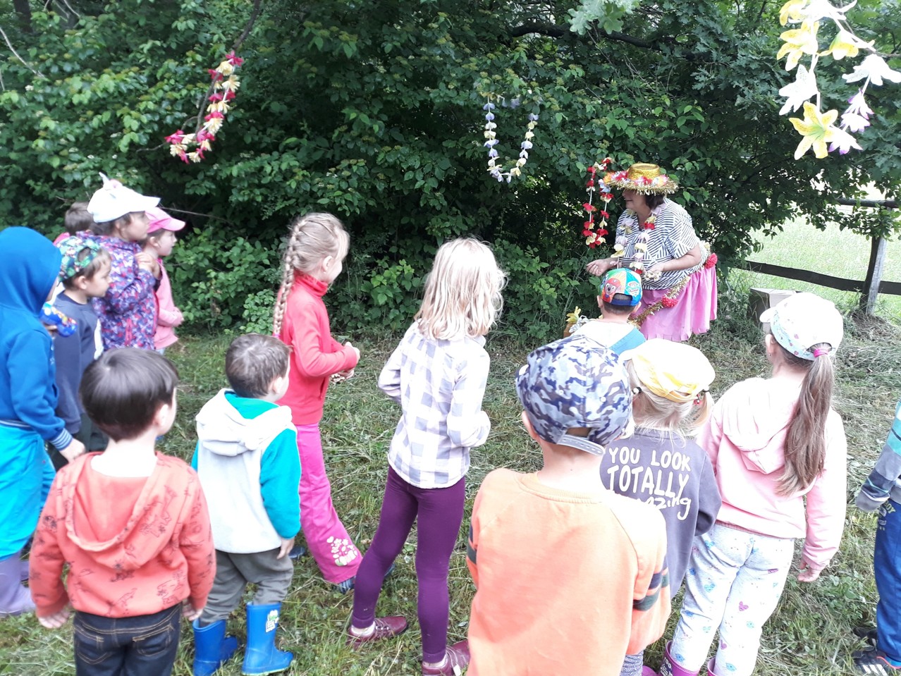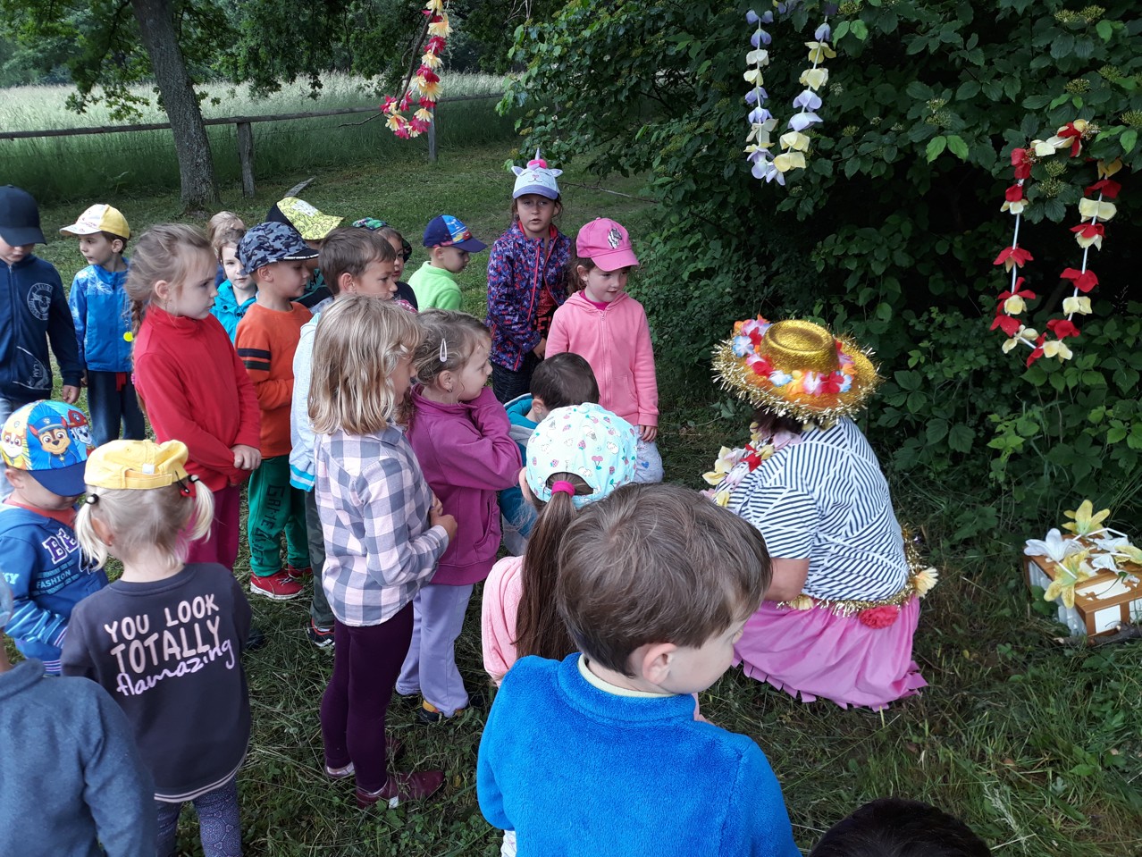 Se školním rokem jsme se loučili v přírodě, na myslivecké chatě. I za nepříznivého počasí jsme si to užili. Děti měly kromě jiného i bohatý raut, který pro ně připravili rodiče. Pan starosta nám zabezpečil dovoz obědu a nejen to. Byl členem poroty, která vybírala nejlešího hospodáře vody. Pokusy s vodou se líbily zejména chlapcům. Děvčata si zase užila diskohrátky. Všem se líbila i lesní víla v podání paní Navláčilové. Ovšem perličkou na pomyslném dortu byl dovoz na chatu" Navláčilovymi koňmi". Spousta dětí se vezla na vozu určitě poprvé. Za tento krásný zážitek děkujeme rodině Navláčilové, Vlčnovské.