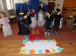 Na poslední cestu se nebožka basa vydala s celým smutečním průvodem, který za doprovodu smutečního pochodu vedl ministrant, za ním kráčel ctihodný pan farář, následovala nebohá basa, smrťák, družičky, plačky a různorodé maškarky. Za srdceryvného pláče byla basa pohřbena. Pak následovala pohřební hostina, na kterou nám maminka Haničincová připravila místní specialitku – magaše. Tím jsme splnili další úkol z plánu činností na téma jídlo z mezinárodního programu Ekoškola.