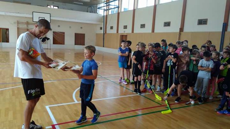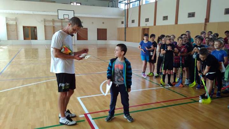 Závěr školního roku nepatřil ve škole jen úklidu tříd. Naši školáci si užili příjemné dopoledne ve sportovní hale, kde si všichni zahráli florbal. Zábavné sportovní dopoledne připravil pro školáky a školačky trenér florbalu Vašek Hadrava, který ke hře přiměl i paní učitelky. Jako brankáři nám vypomohli naši bývalí žáci Kuba Suchý a David Hadrava. Všichni jsme si sportovní dopoledne žili a už dnes se těšíme na vánoční florbalový turnaj.