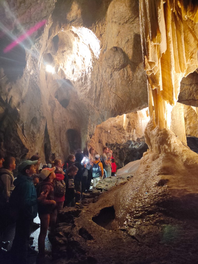 Je červen, a to je čas školních výletů. Po celoroční práci si děti zaslouží nějakou odměnu. Letos jsme se vydali do Moravského krasu, k propasti Macocha a také do Punkevních jeskyní. Cesta to byla opravdu dlouhá, ale stálo to za to! Po příjezdu jsme vláčkem vyjeli ke stanovišti lanovky, tou jsme vyjeli nahoru k propasti Macocha. Tam jsme šli na oběd. Pak jsme se podívali do propasti Macocha a jejího nejbližšího okolí. Děti také nakoupily suvenýry pro sebe a své nejbližší. Odtud jsme lanovkou sjeli dolů ke vstupu do Punkevních jeskyní. Paní průvodkyně nás provedla „suchou částí jeskyně“, poutavě nám pověděla vše o této jeskyni a krápníkové výzdobě v ní. Na závěr nás předala průvodcům ve člunech, kteří nás provezli po řece Punkvě. Jejich povídání bylo zajímavé, místy velmi zábavné a místy trochu strašidelné. Naštěstí jsme se s člunem nepřevrátili do studené vody a v pořádku jsme přistáli u mola. Pěšky jsme se přesunuli zpět k autobusu. Ten nás unavené, ale spokojené dovezl v pořádku domů.