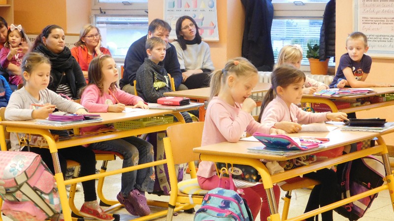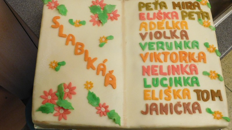 Ke konci listopadu se přiblížil také konec písmen a čtení v Živé abecedě. Na naše malé školáčky čeká čtenářské období ve Slabikáři. Proto jsme do školy pozvali rodiče, prarodiče a sourozence. Děti předvedly všechny dovednosti, znalosti a vědomosti, které za první čtvrtletí ve škole získaly. Práce se jim velmi podařila, proto mohly slavnostně dostat nové SLABIKÁŘE. A co by to bylo za oslavu bez nějaké dobroty? Maminky připravily občerstvení a paní Tomancová upekla dětem překrásný slabikářový dort se všemi třinácti jmény našich prvňáčků. Všem patří velké poděkování za přípravu a organizaci slavnostního odpoledne.