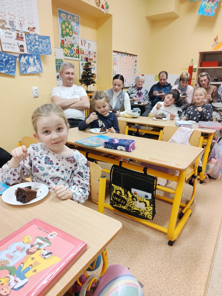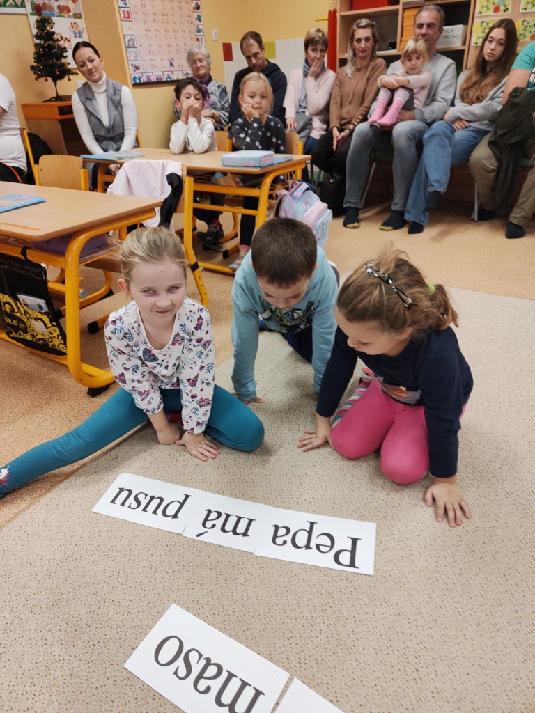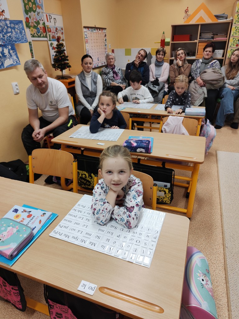 Čas letí jako splašený a naši malí prvňáčci už mají za sebou téměř čtyři měsíc pilné práce. Za tu dobu se naučili spoustu nových věcí – zvládnou přečíst nejen slabiky, ale i slova nebo jednoduché věty, rozdělí slova na slabiky, znají první či poslední písmeno ve slově. Trénují také psaní, dokážou napsat několik písmen a slabik. Prostě, práce jim jsme krásně od ruky a to nejen v českém jazyce. Bylo tedy načase pozvat do školy rodiče a babičky, aby se na vlastní oči přesvědčili, jak dětem ve škole daří. Končíme totiž práci v Živé abecedě a čeká na děti Slabikář. A to je třeba náležitě oslavit. Odpoledne jsme všem hostům ukázali, co všechno už umíme. Odměnou dětem byl nejen Slabikář, ale také sladká odměna, na které si všichni společně pochutnali. Nezbývá než popřát mnoho dalších úspěchů ve školní práci.