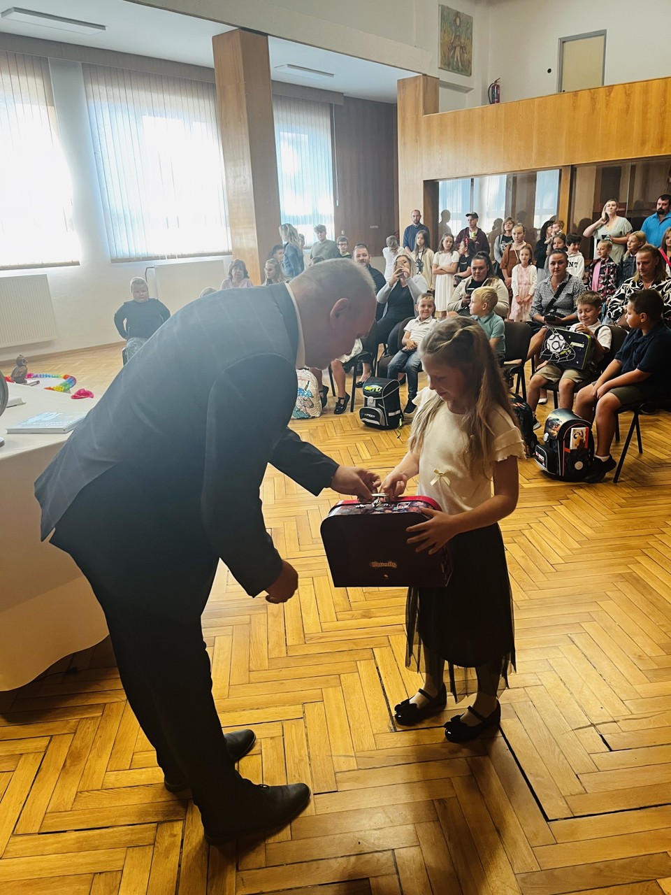 Dnes jsme slavnostně zahájili školní rok 2025/2026. Již tradiční slavnostní zahájení proběhlo v kulturním domě za přítomnosti pana starosty, všech žáků, pedagogických zaměstnanců školy a hostů. Obzvláště slavnostní je 1. září pro všechny prvňáčky a jejich rodiče. V naší škole jsme jich letos přivítali celkem osm – tři děvčata a pět chlapců. Všem školáků přejeme prima kamarády, hodně úspěchů ve výuce, a hlavně dobrou náladu po celých nadcházejících deset měsíců.