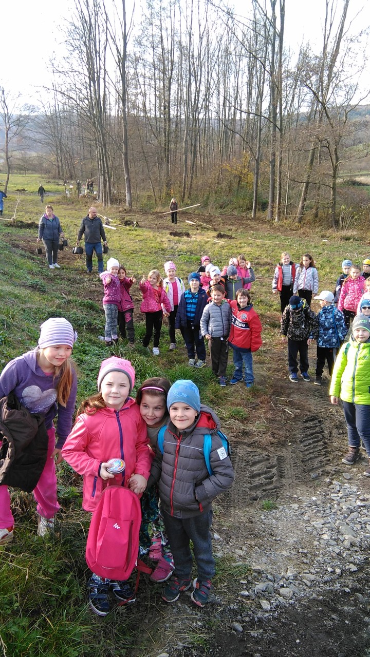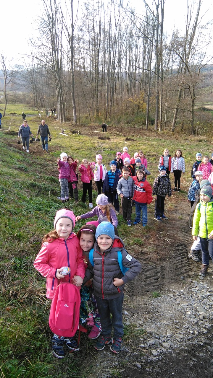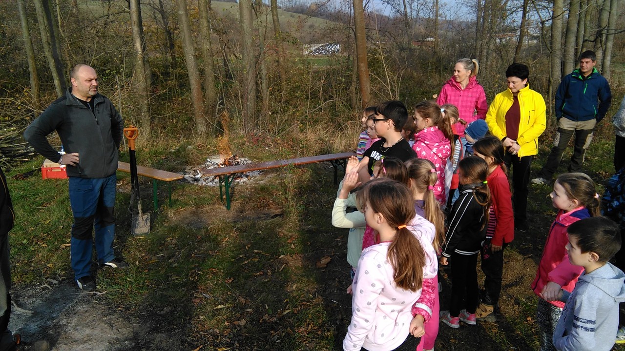 Zbytek vyučování probíhal čistě prakticky – v přírodě. Místní spolek včelařů nás přizval ke spolupráci na výsadbě Aboreta. Všichni školáci si utvořili dvojice a ve dvojicích pak sadili stromky. Jámy již byly připravené, bylo tedy potřeba stromky vyrovnat, přidat opěrný kůl a zahrnou kořeny hlínou. Nakonec jsme všechny stromy zalili. Dopoledne bylo opravdu překrásné počasí, takže se celá akce velmi vydařila. V závěru dostaly všechny děti špekáček, který si po práci opekly nad ohněm. Včelaři také dětem připravili za pomoc sladkou odměnu. Bylo to krásně prožité dopoledne, už dnes se těšíme na další spolupráci.