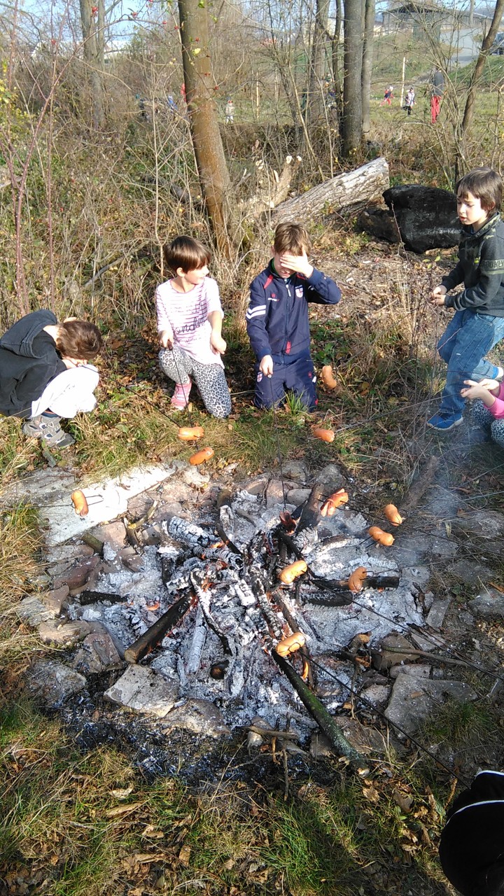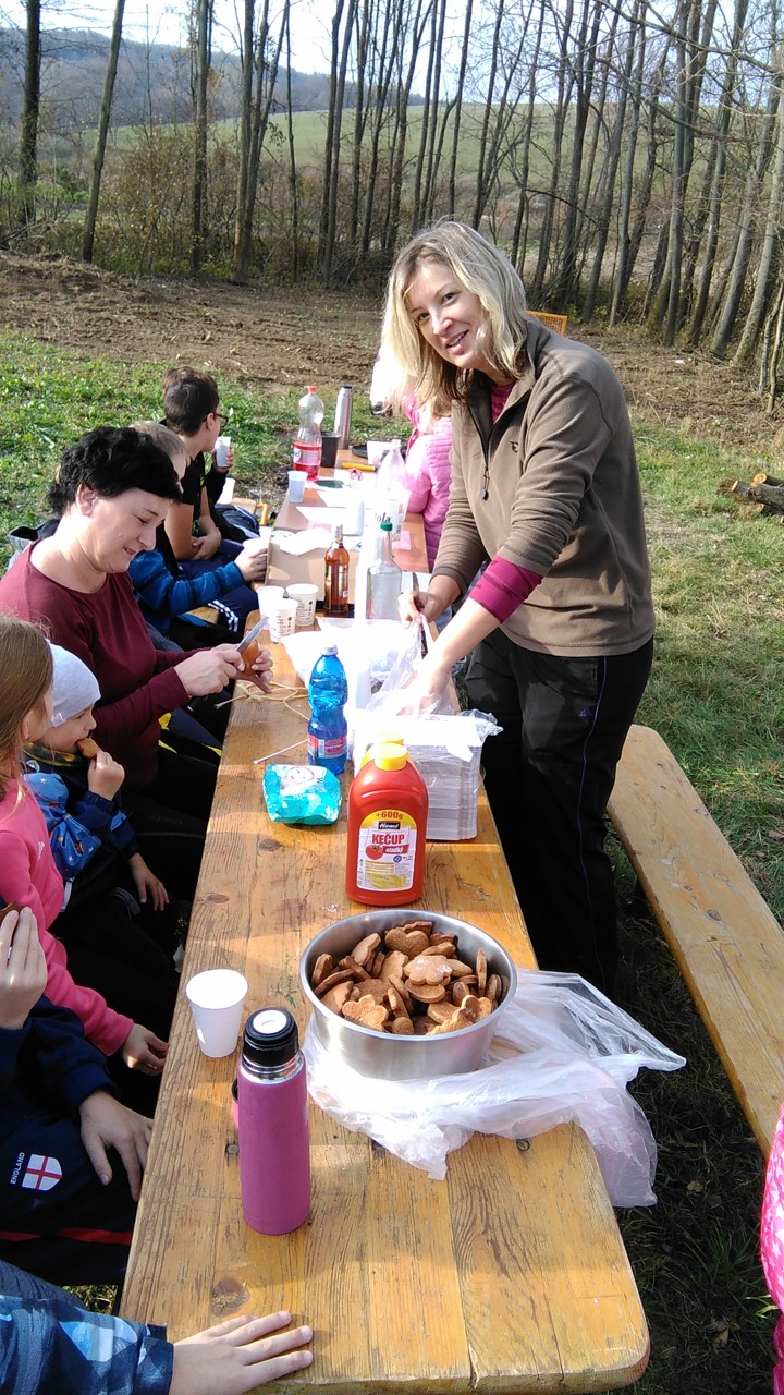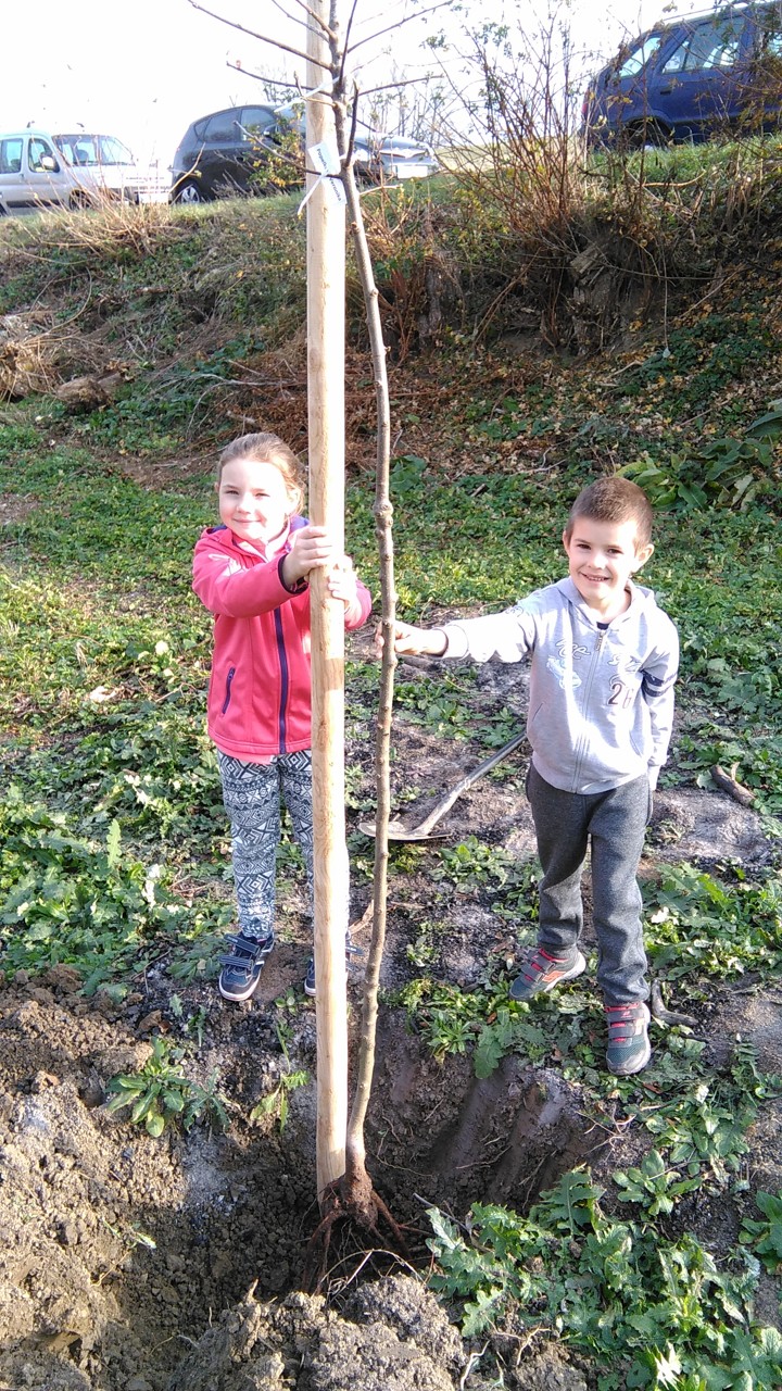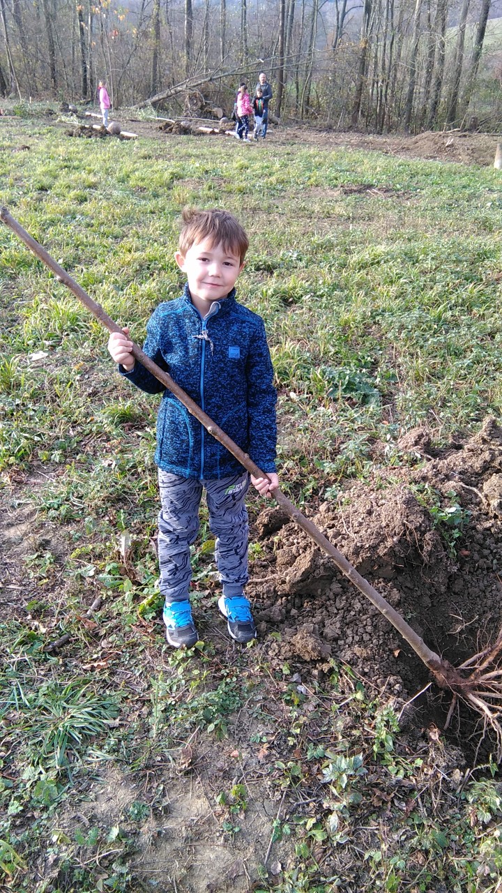 Zbytek vyučování probíhal čistě prakticky – v přírodě. Místní spolek včelařů nás přizval ke spolupráci na výsadbě Aboreta. Všichni školáci si utvořili dvojice a ve dvojicích pak sadili stromky. Jámy již byly připravené, bylo tedy potřeba stromky vyrovnat, přidat opěrný kůl a zahrnou kořeny hlínou. Nakonec jsme všechny stromy zalili. Dopoledne bylo opravdu překrásné počasí, takže se celá akce velmi vydařila. V závěru dostaly všechny děti špekáček, který si po práci opekly nad ohněm. Včelaři také dětem připravili za pomoc sladkou odměnu. Bylo to krásně prožité dopoledne, už dnes se těšíme na další spolupráci.