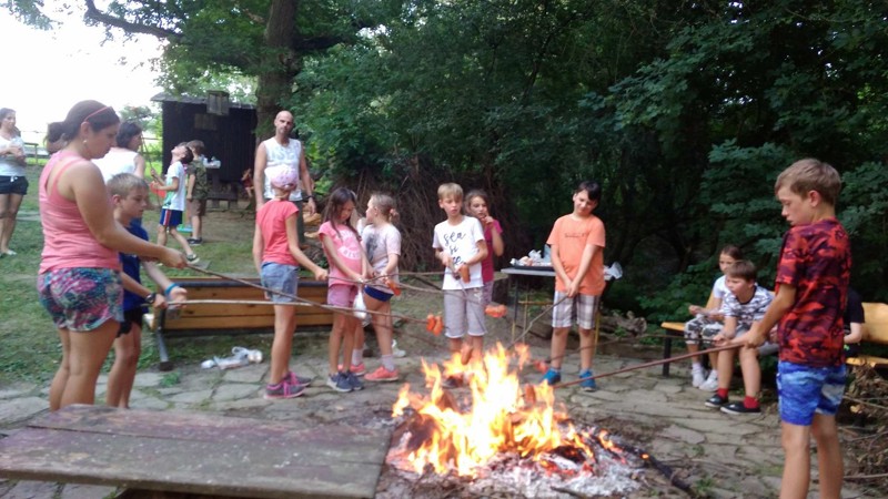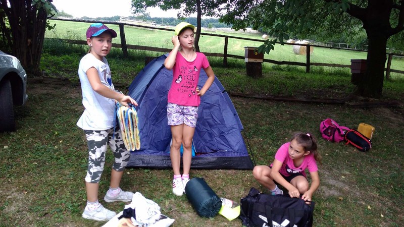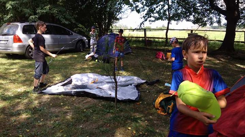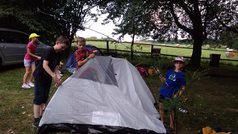Již druhým rokem jsme zakončili školní rok stanováním na chatě u Robinka Navláčila. Již druhým rokem nám počasí ,,přálo" a bouřka nás neminula. Stany jsme stihli postavit, opéct si špekáčky, ale nakonec nás počasí zahnalo do chaty. To nám ale vůbec nevadilo, protože zábava pokračovala v plném proudu. Důležité bylo, že jsme všichni spolu a bez rodičů